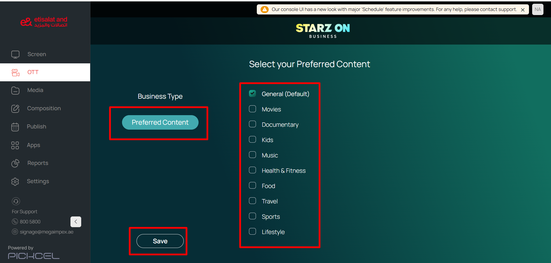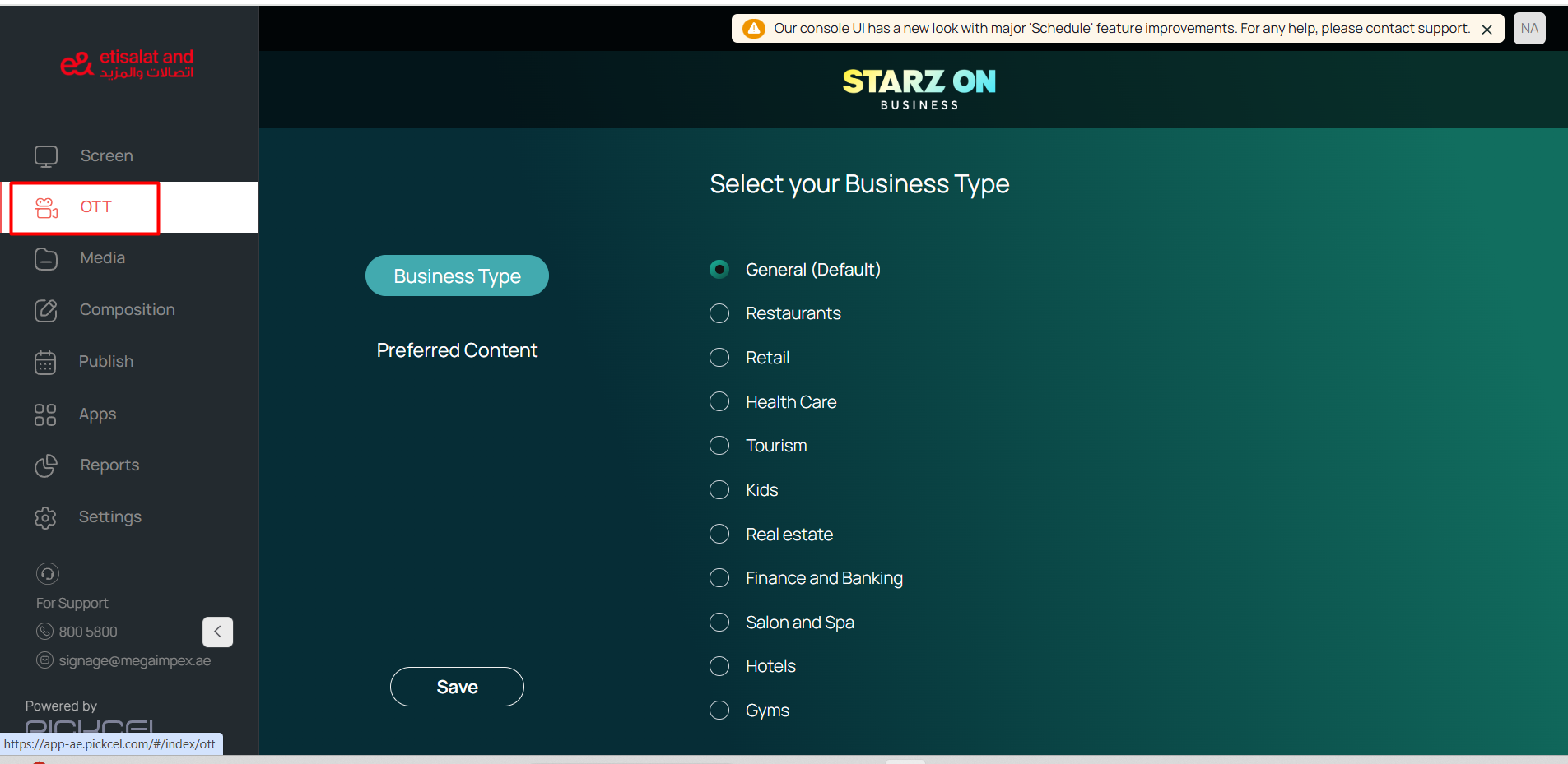 4. Once you click Save, you'll be redirected to the OTT home page.