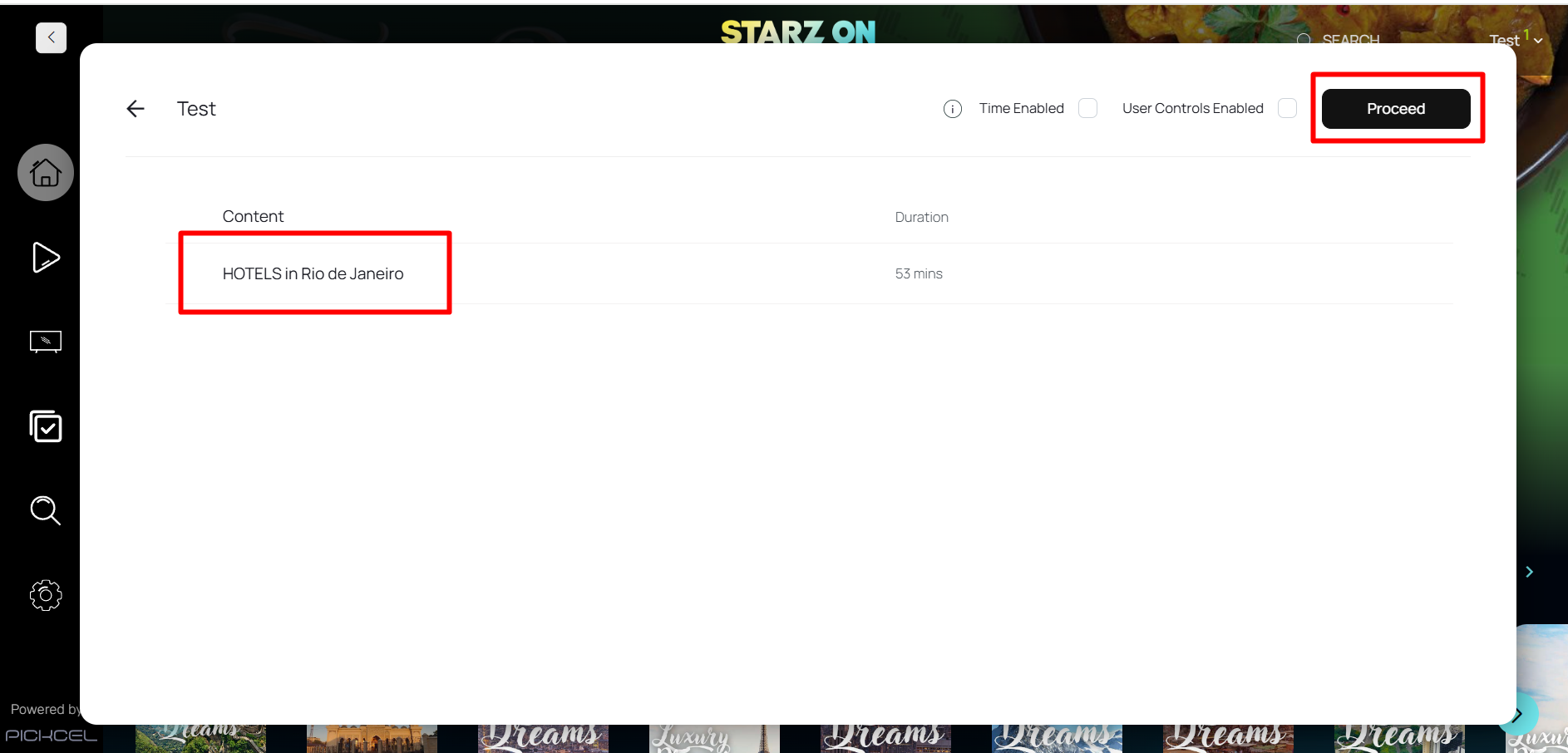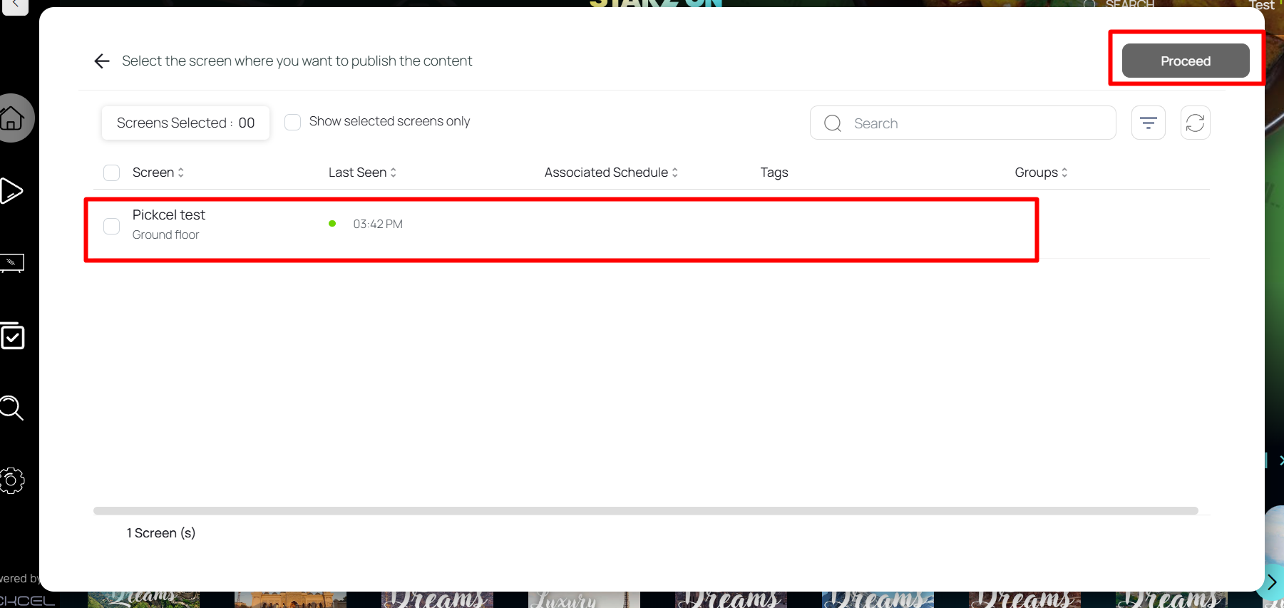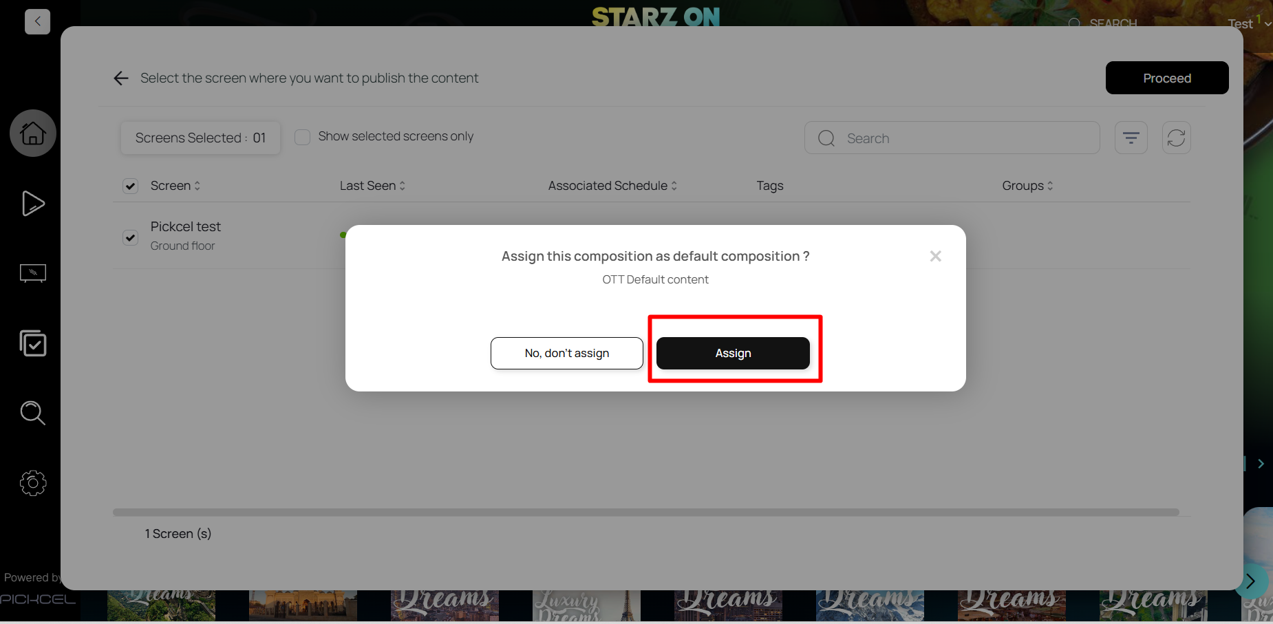 14. When you choose OTT, you will be prompted to select a screen. Simply select the appropriate screen and click Proceed.