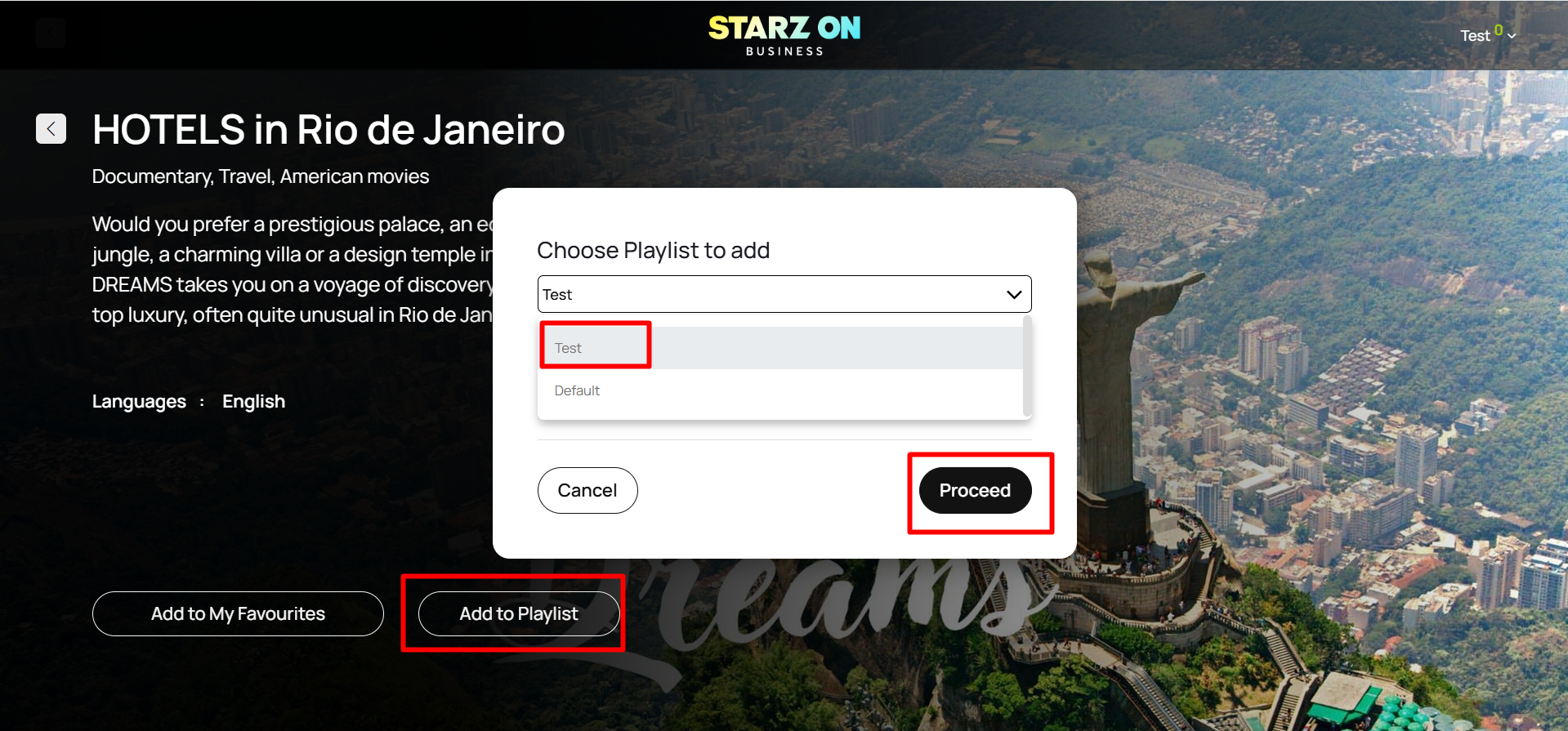10. Click Add to Playlist, then choose the desired playlist and click Proceed. The movie will be added to your playlist.