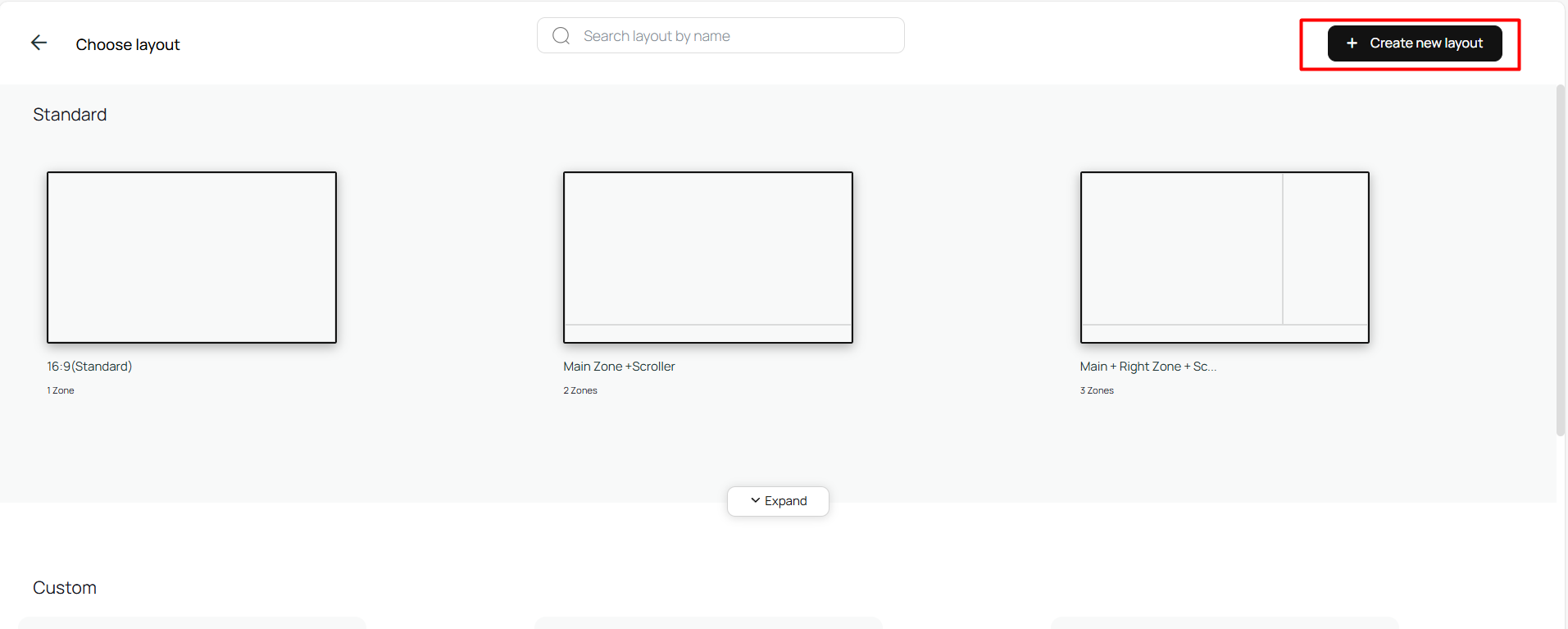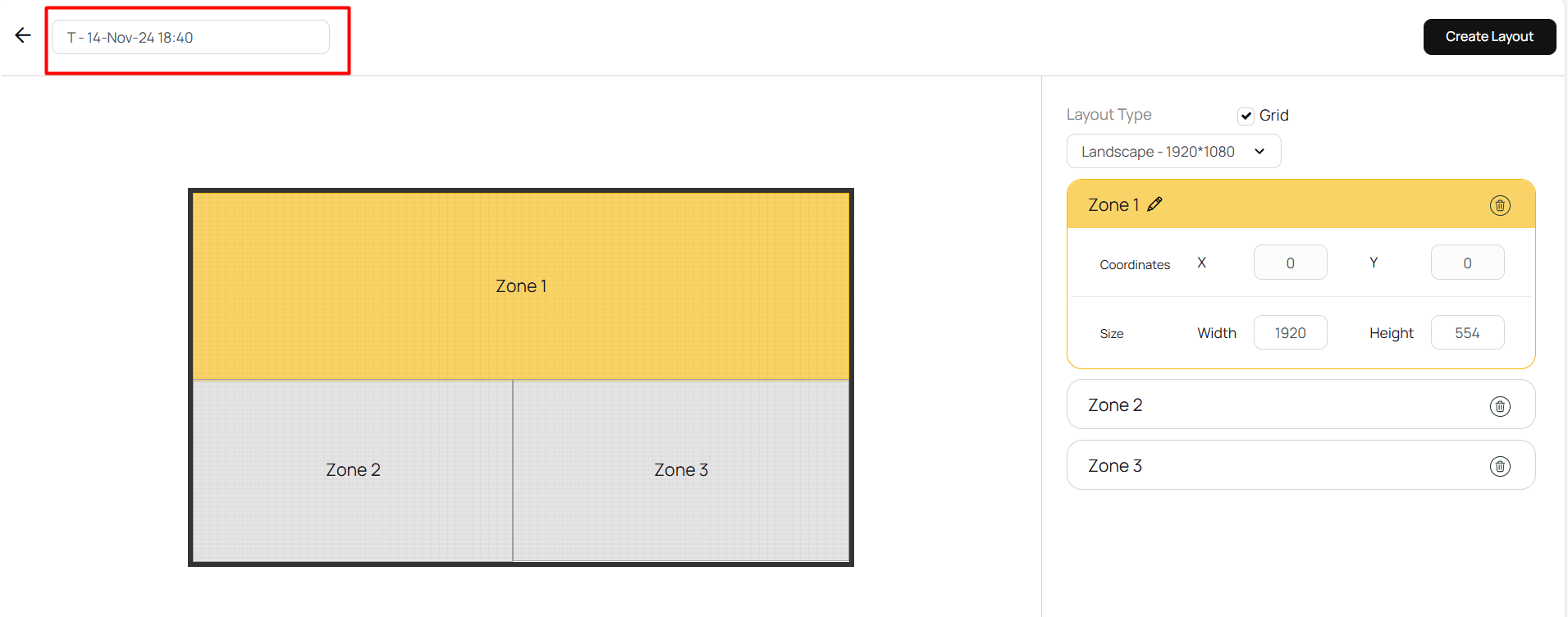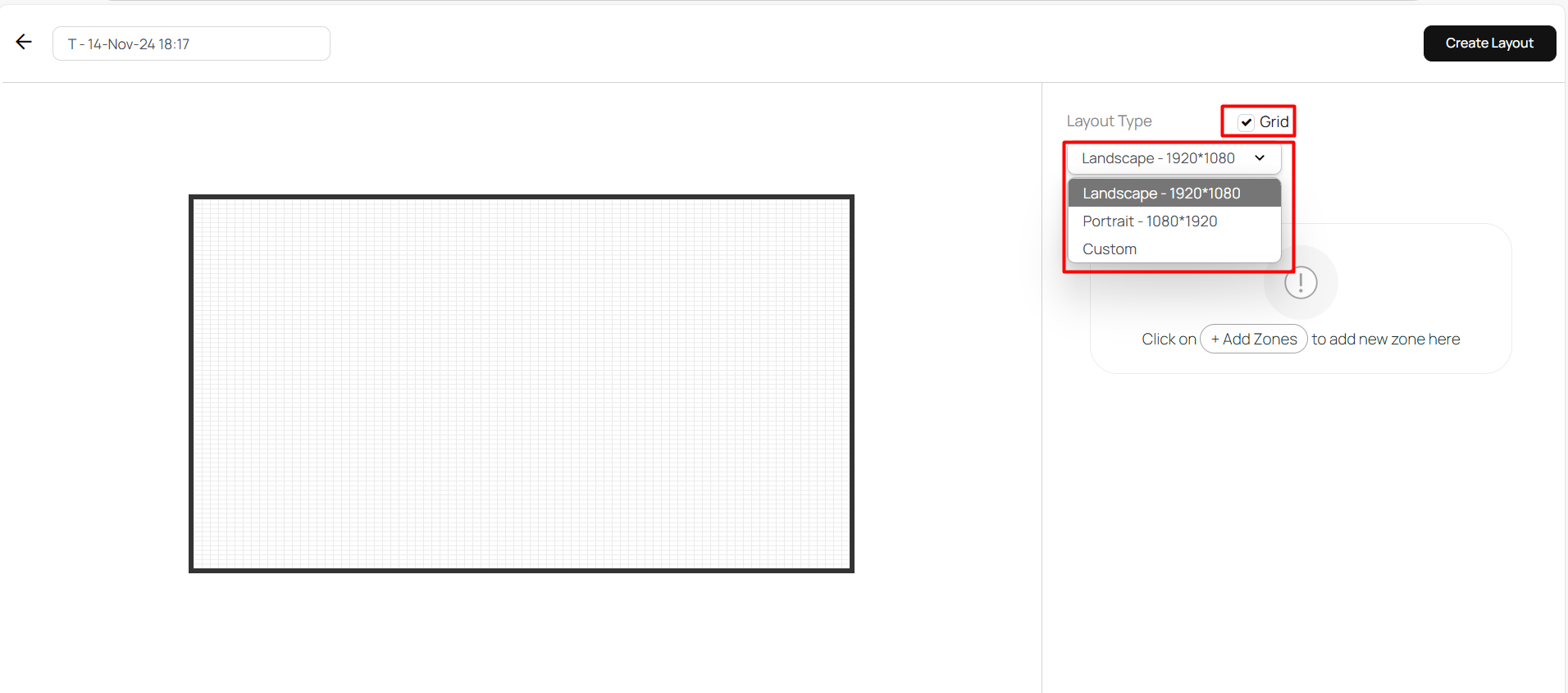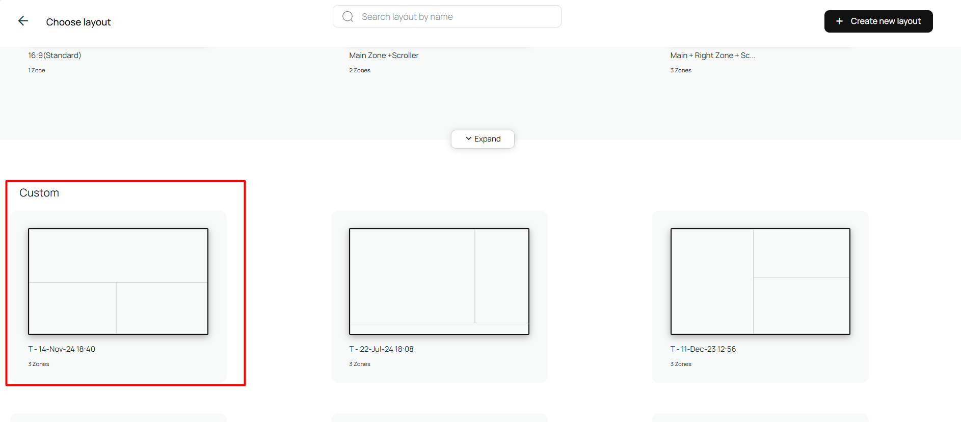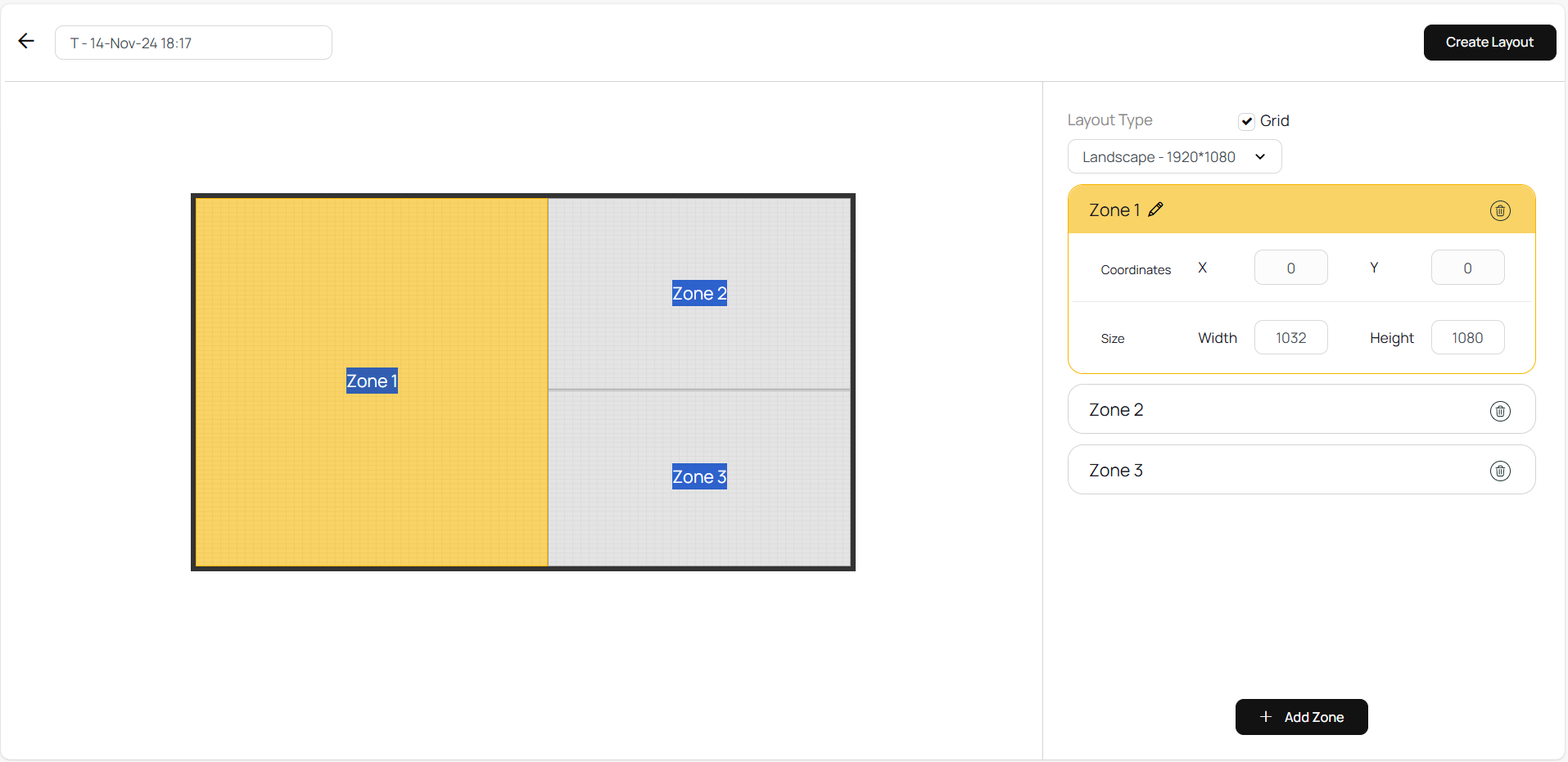 layouts (such as 'Single zone landscape, single-zone portrait, two-zone landscape, etc.)