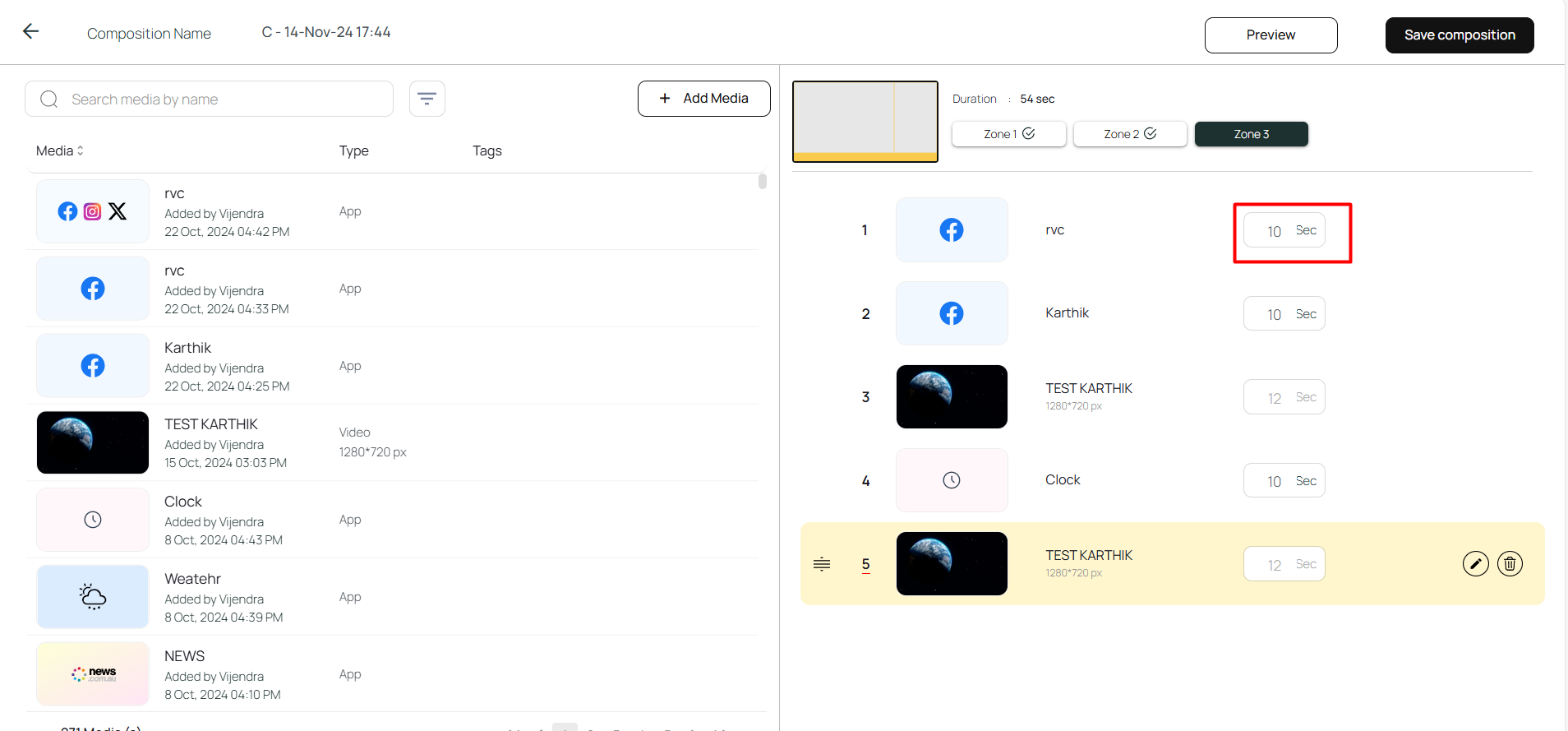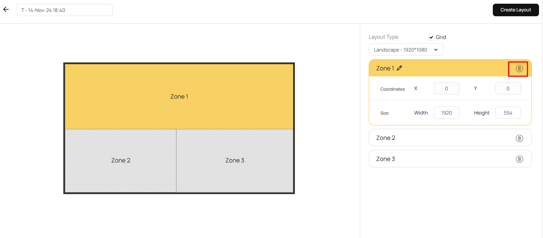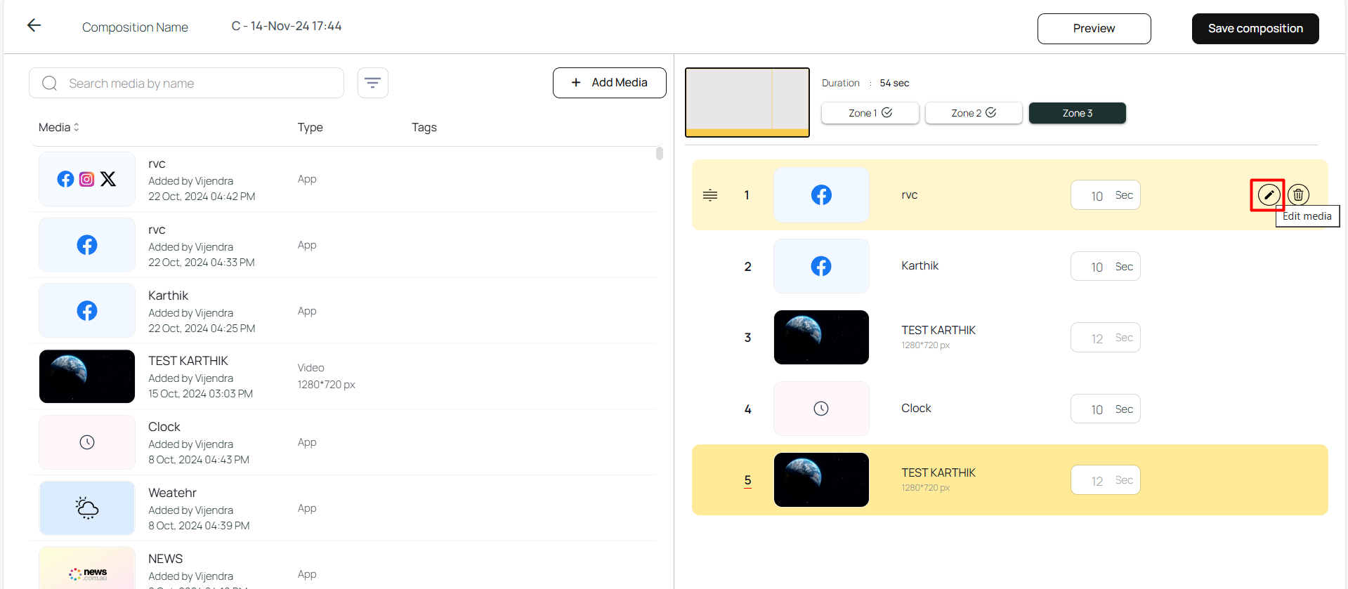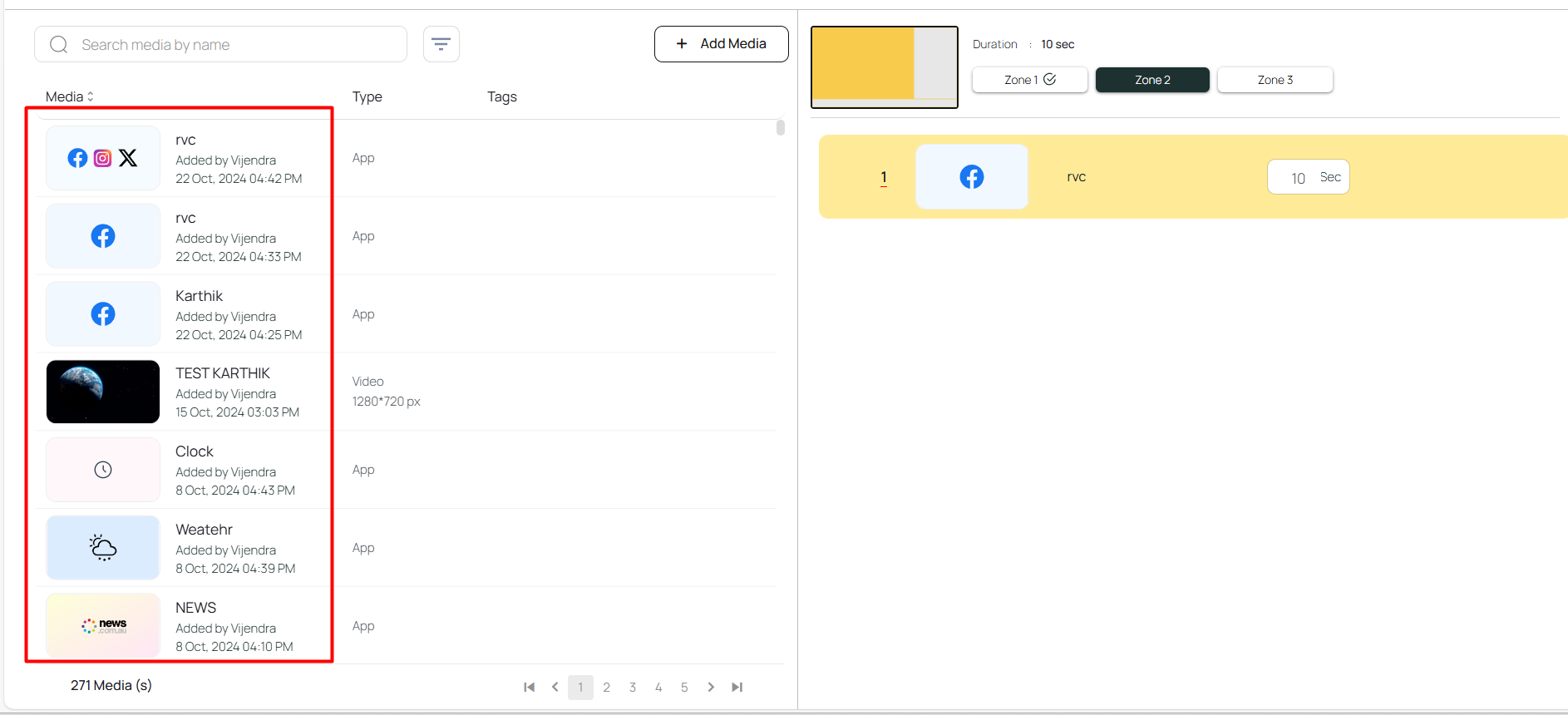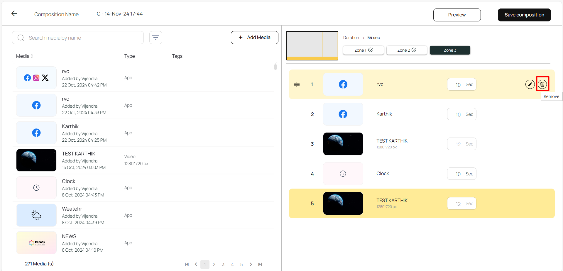 10. To delete a media from the selected zone, hover over the added media and the delete