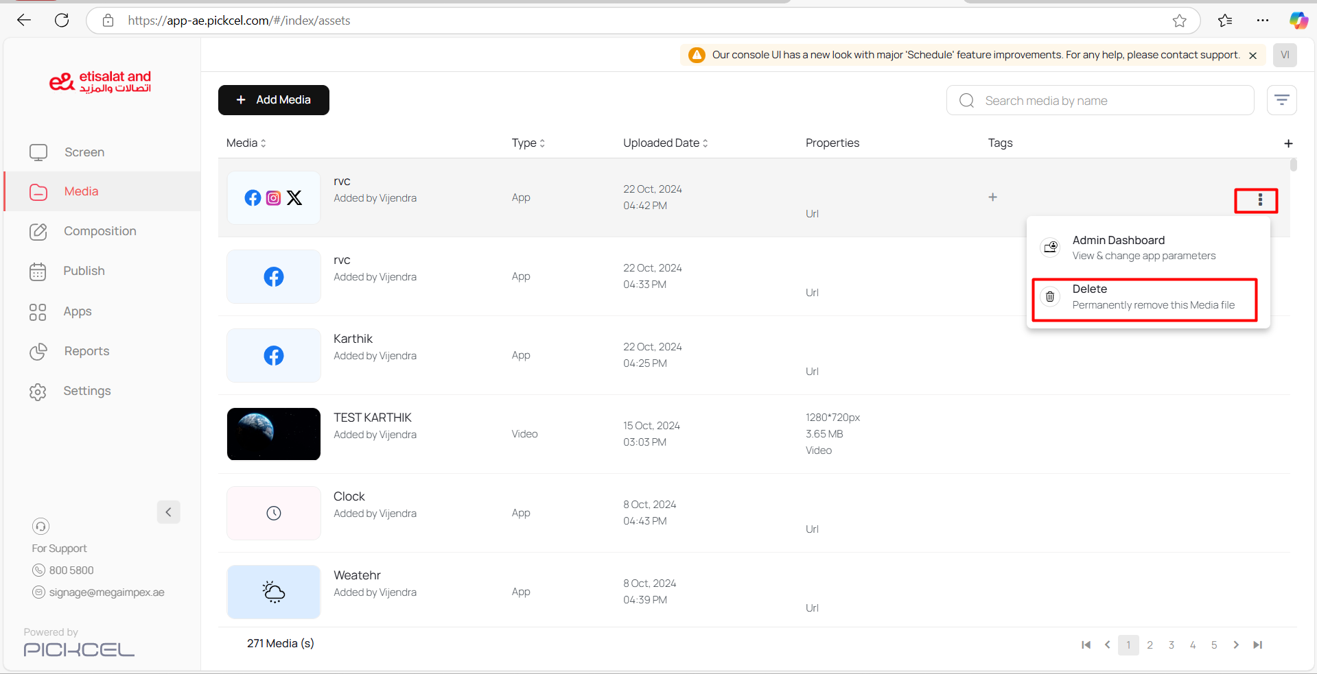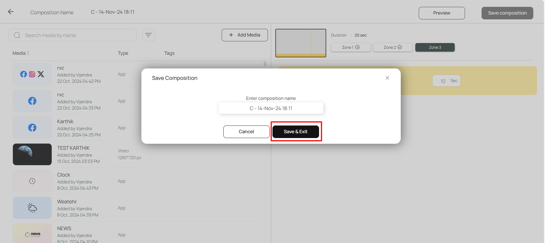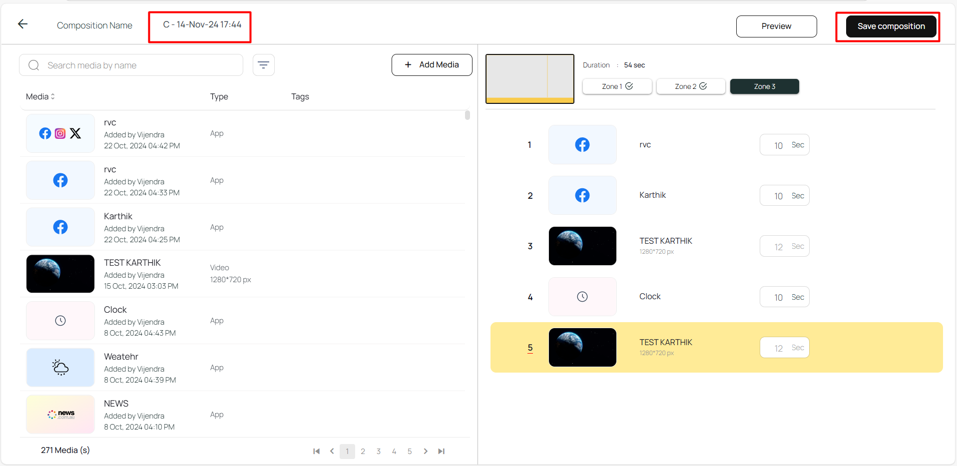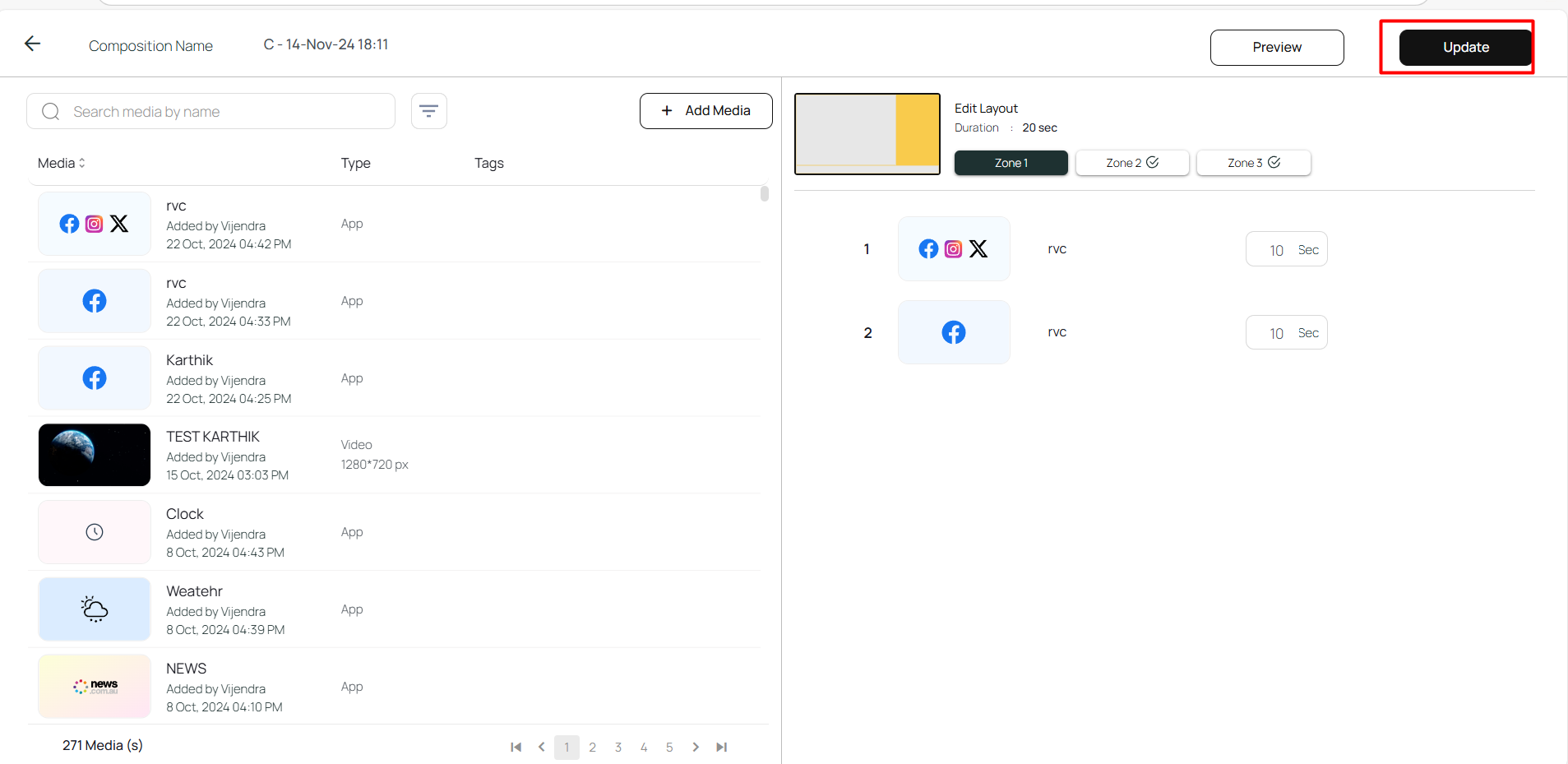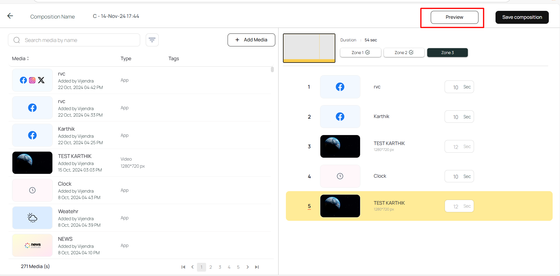 10. To delete a media from the selected zone, hover over the added media and the delete