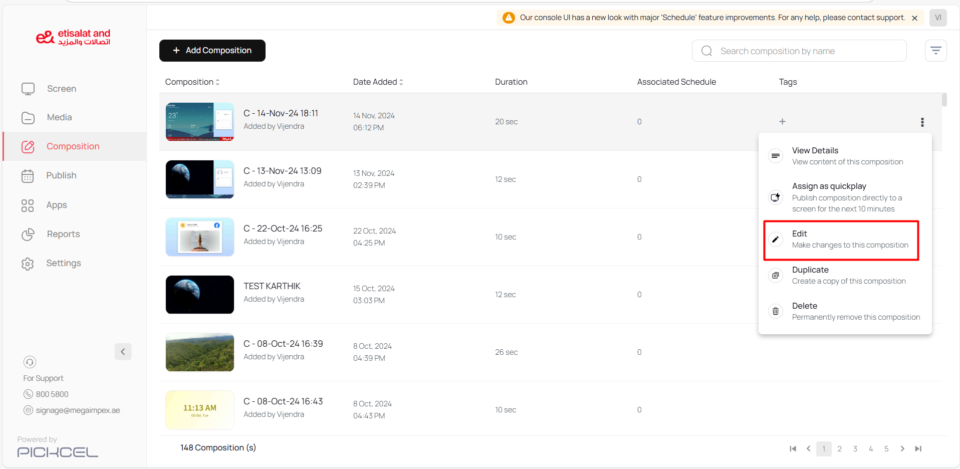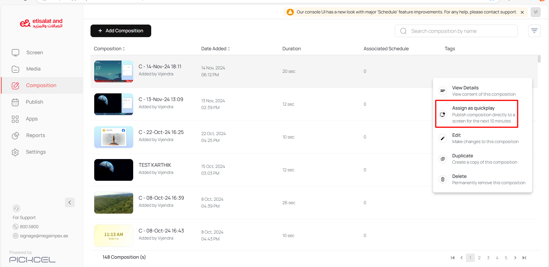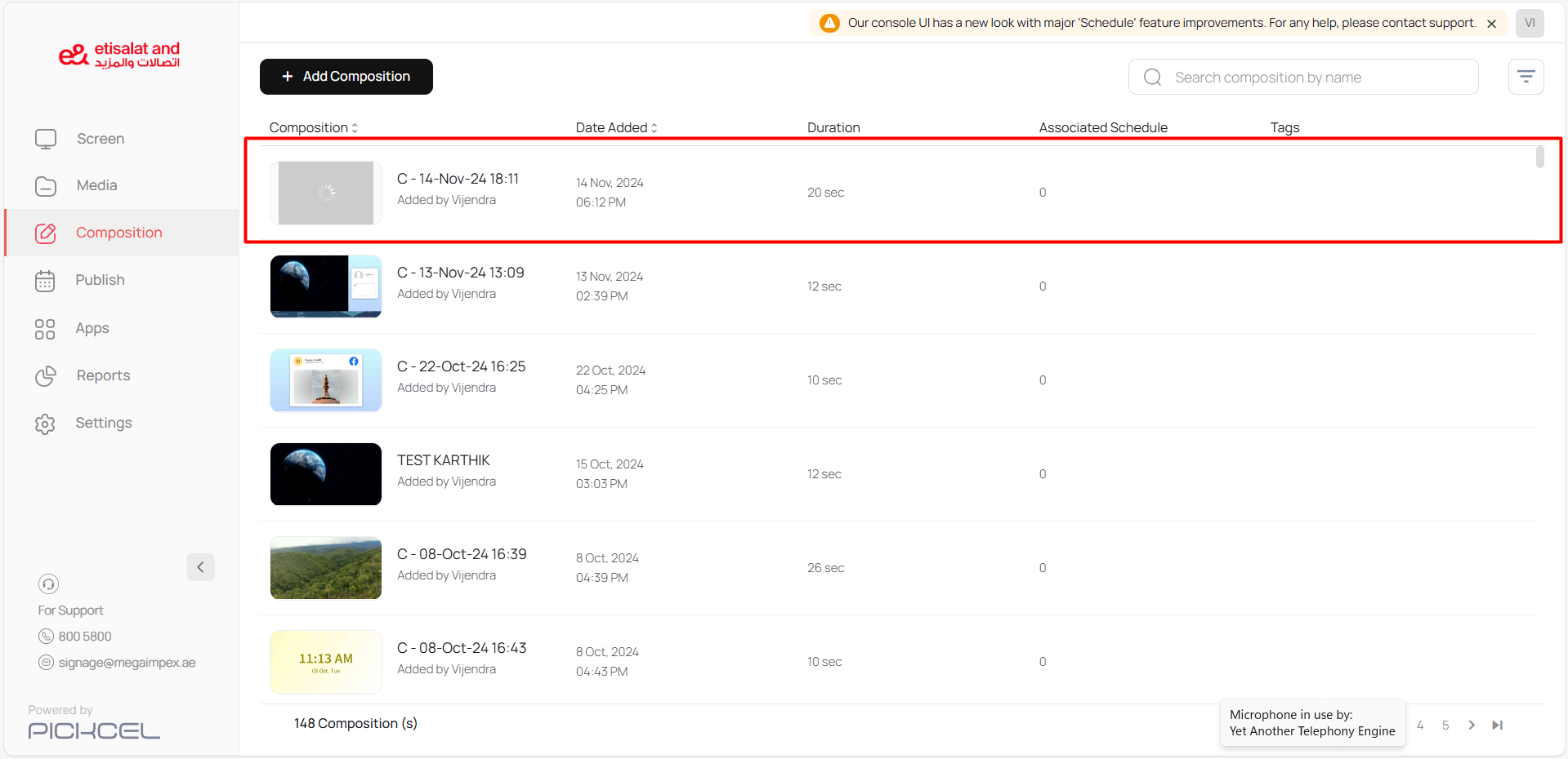 14. Your saved composition appears like this on the Pickcel dashboard.
