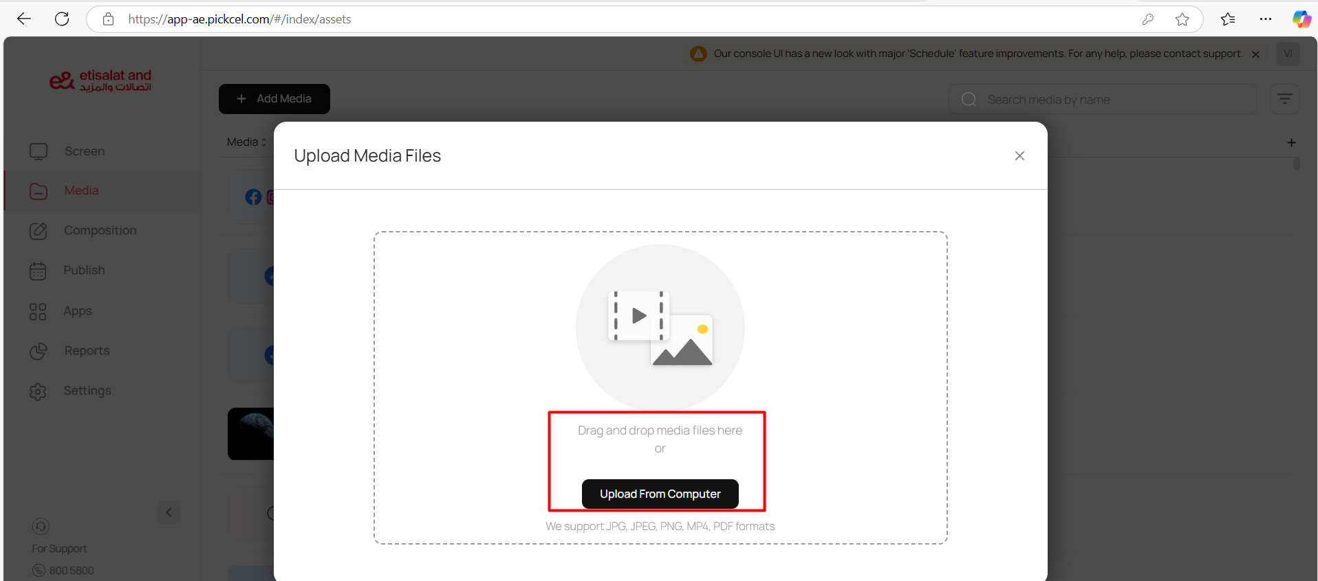 4. Click on "Upload From Computer" to upload or you can also drag and drop media files