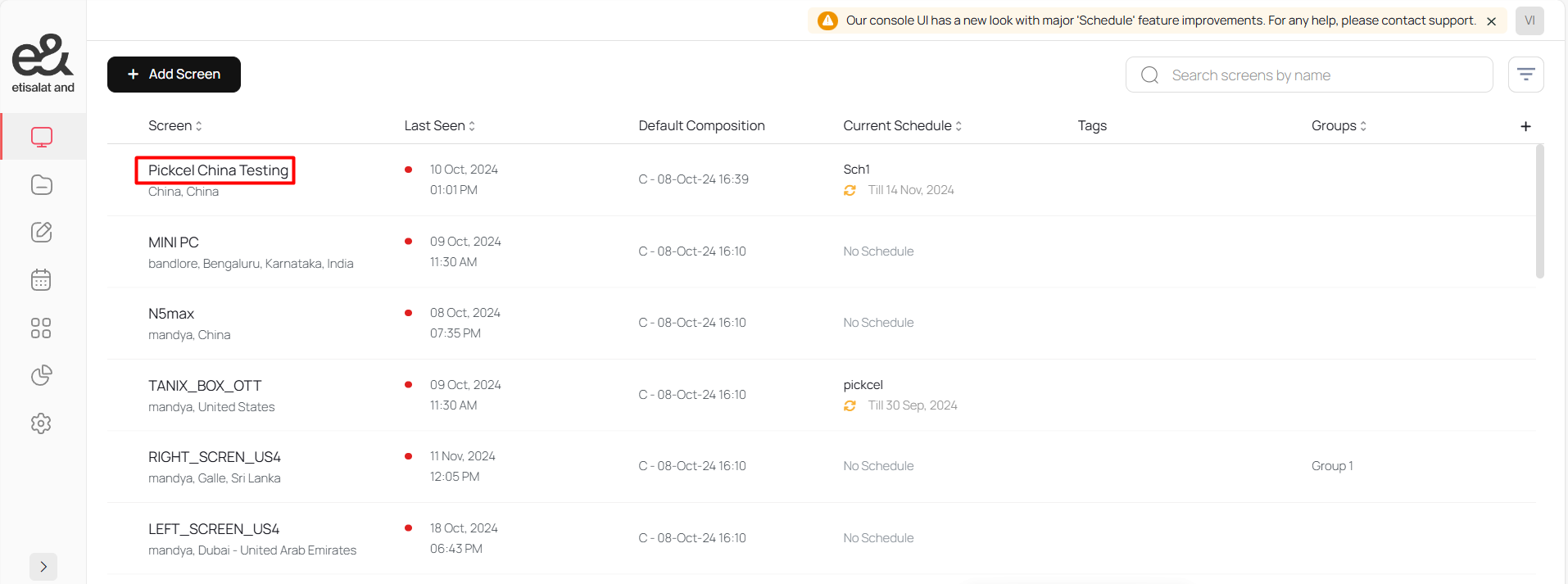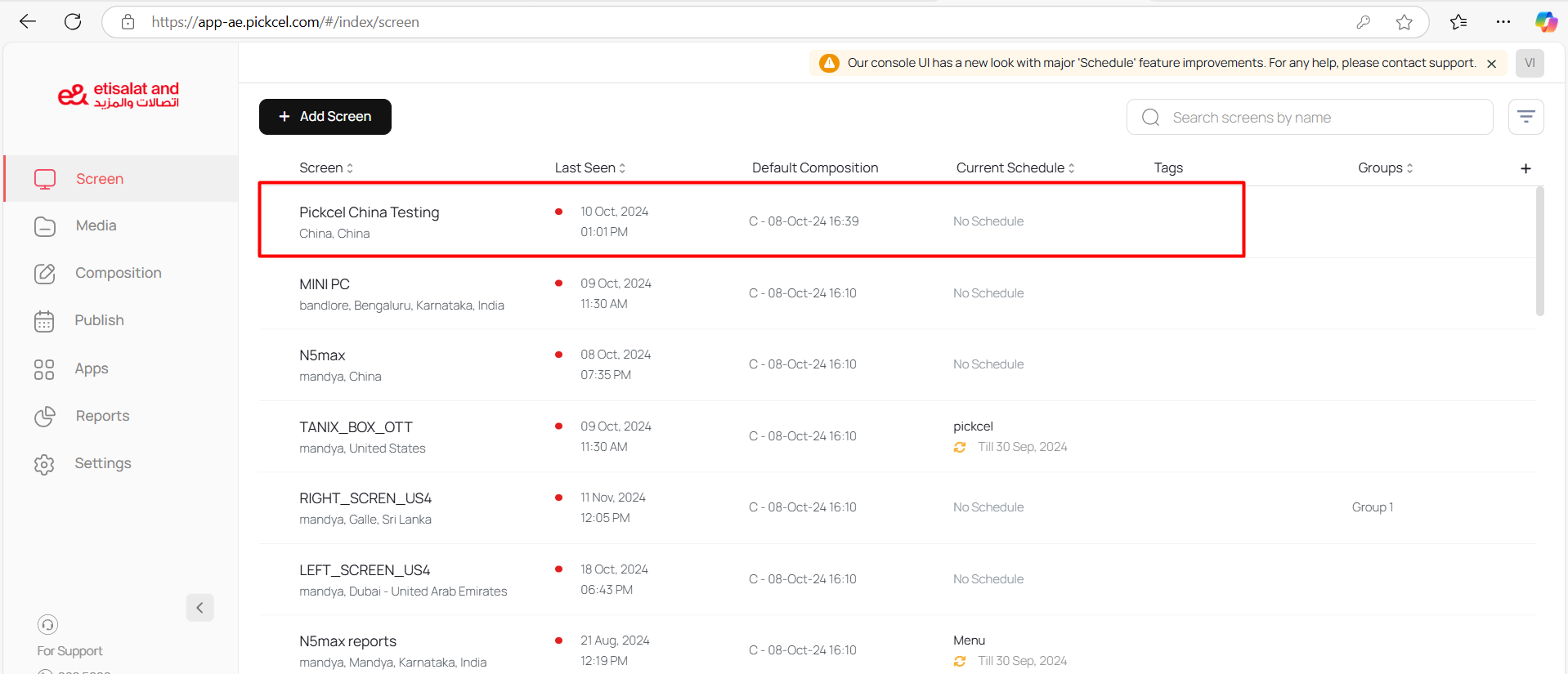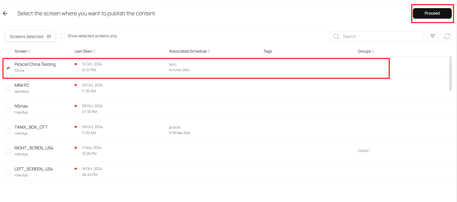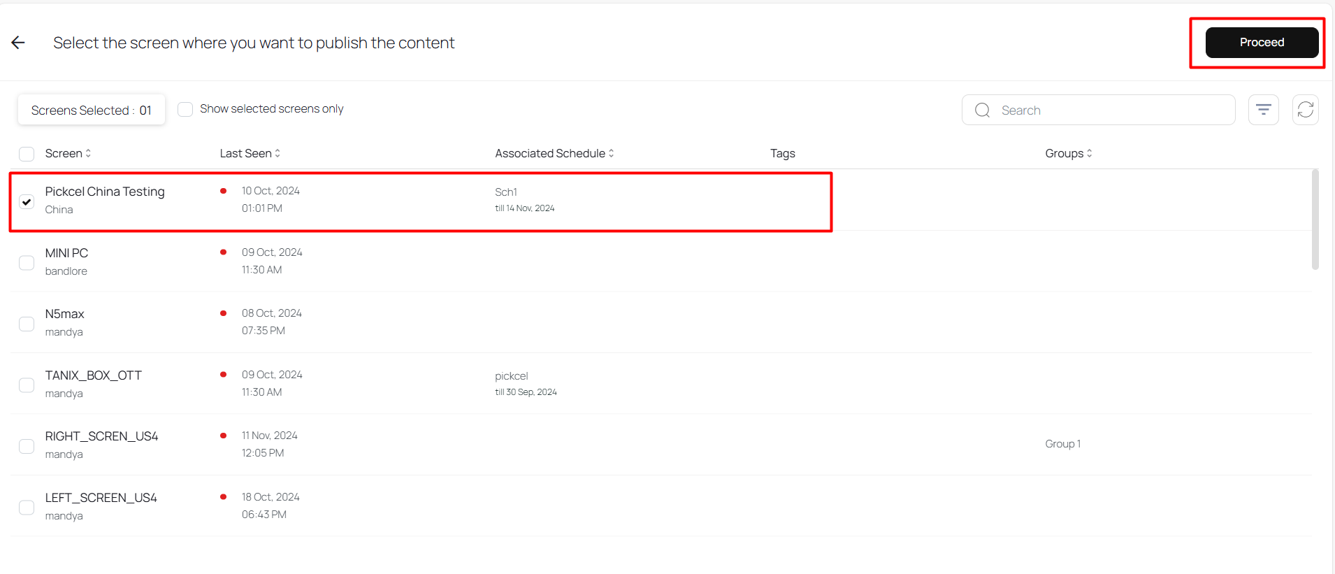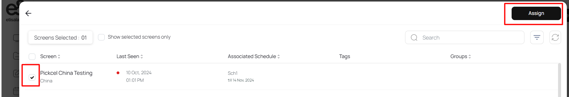 After assigning to the screen it will take about 2-3 minutes to reflect on screen after