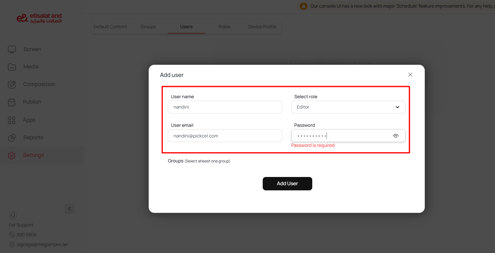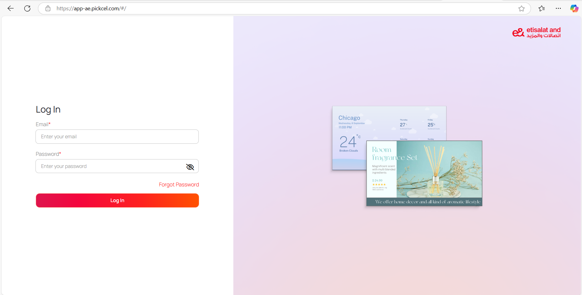 4. Log in to the console using the username and password provided by the Etisalat team.