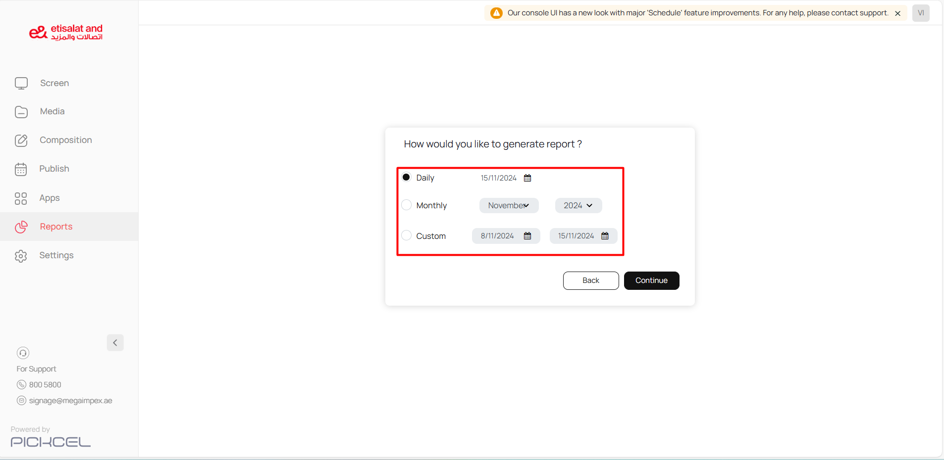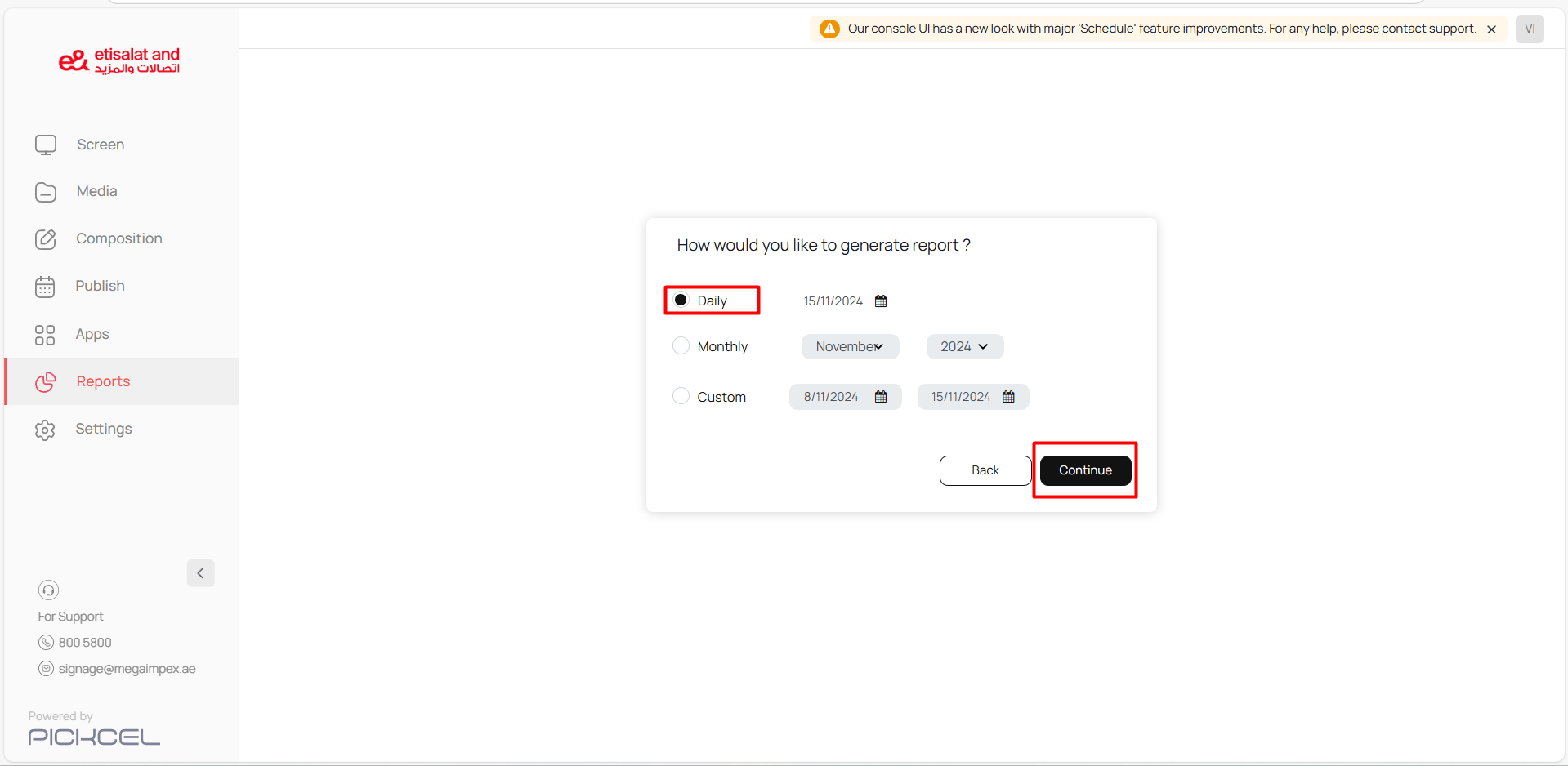 ● Daily: If you want to check any particular date report, go for the daily option and select a