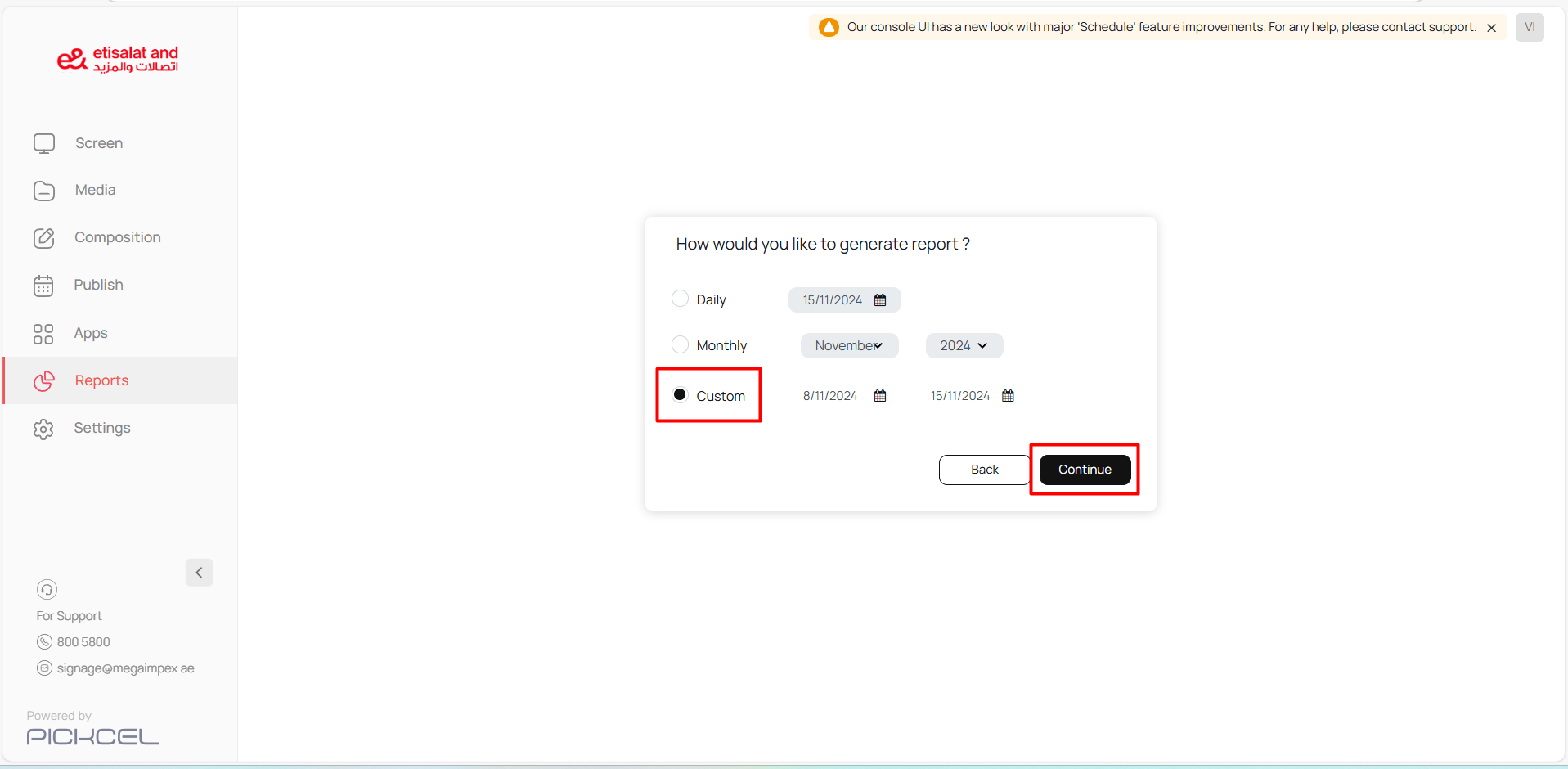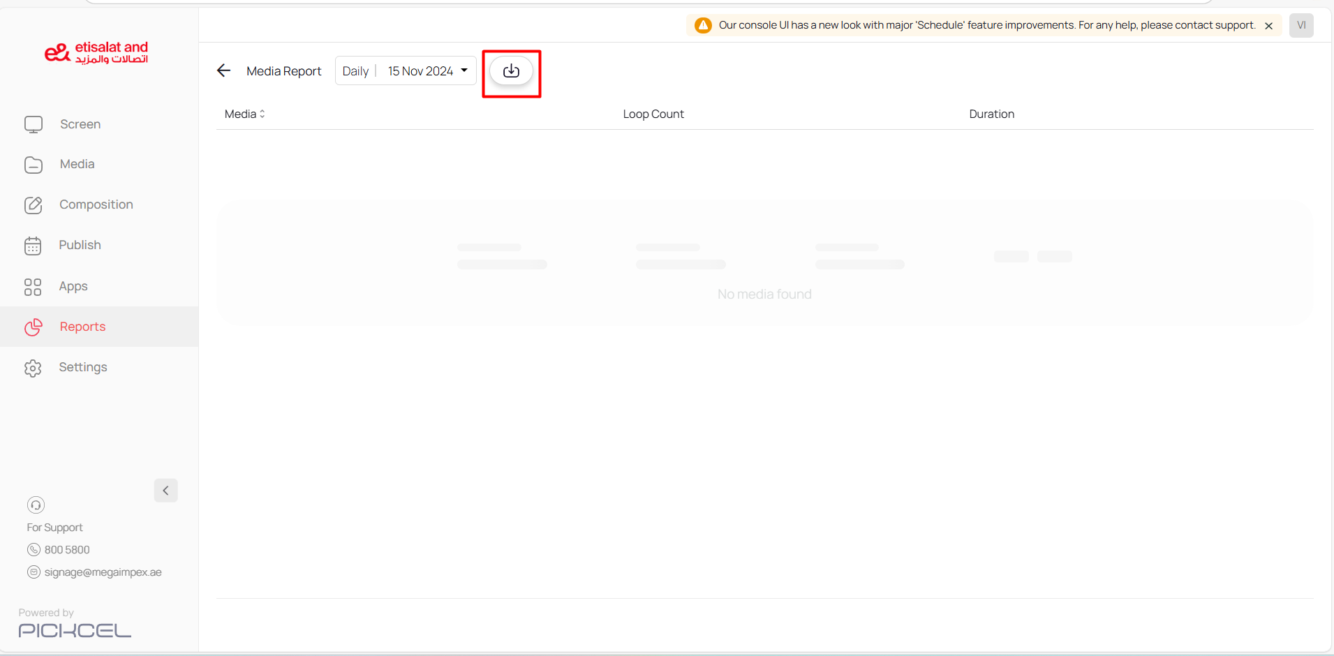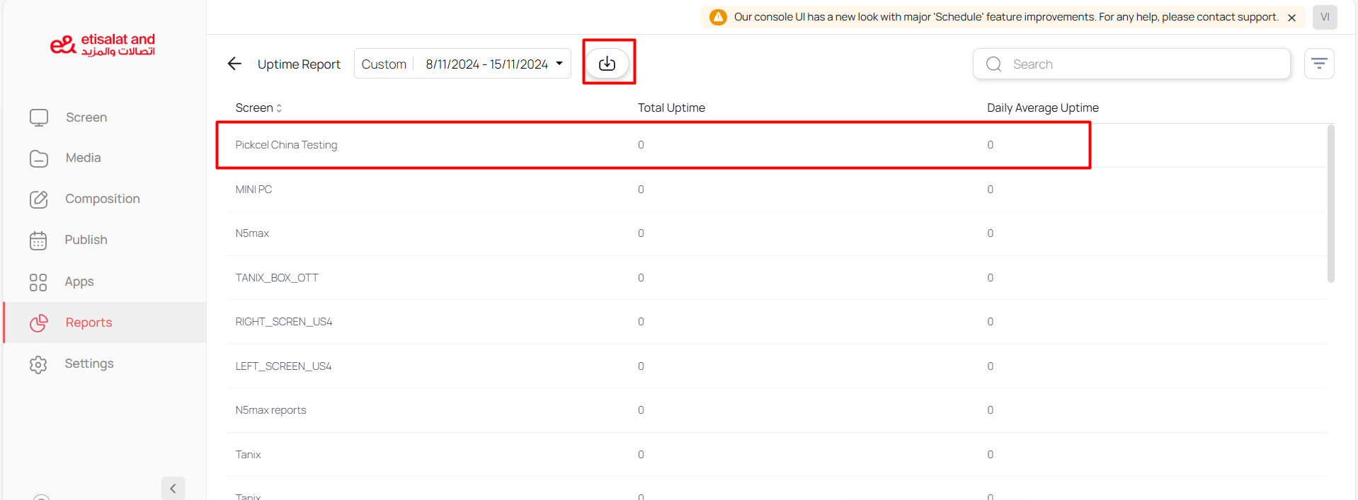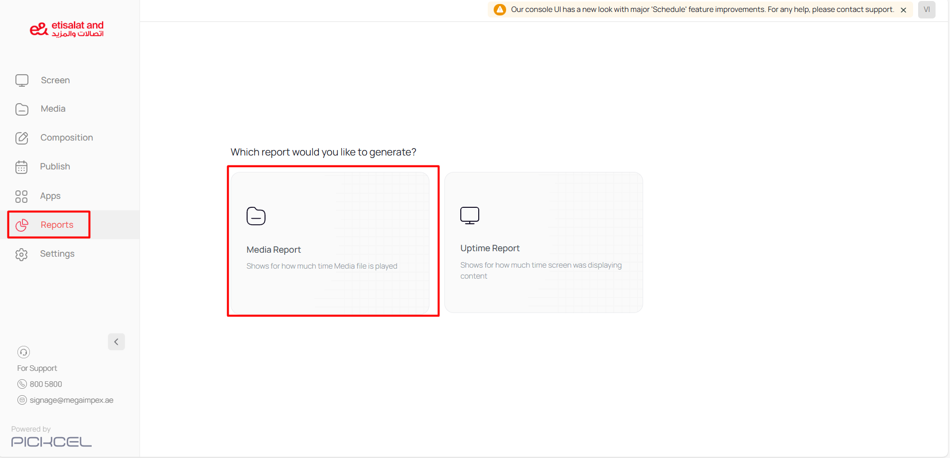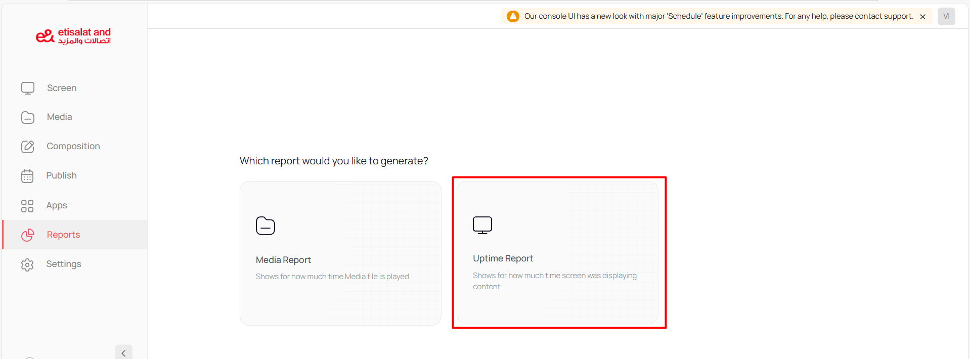 2. Uptime Report: It gives information about the duration of contents running to that display