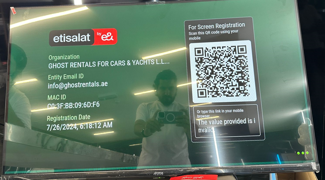 2. Once the screen is connected to the interent, you can see the below image with your registration details.
