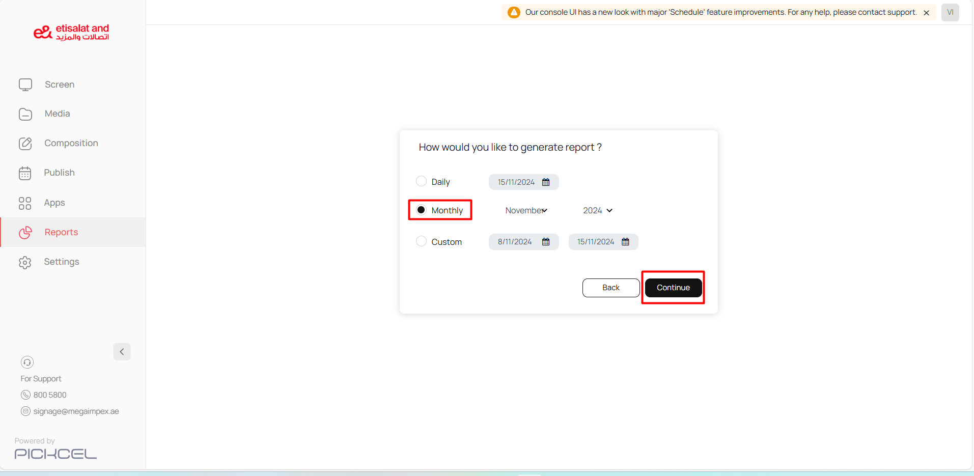 4. Monthly: If you want to check the monthly report, go for the monthly option and select a
