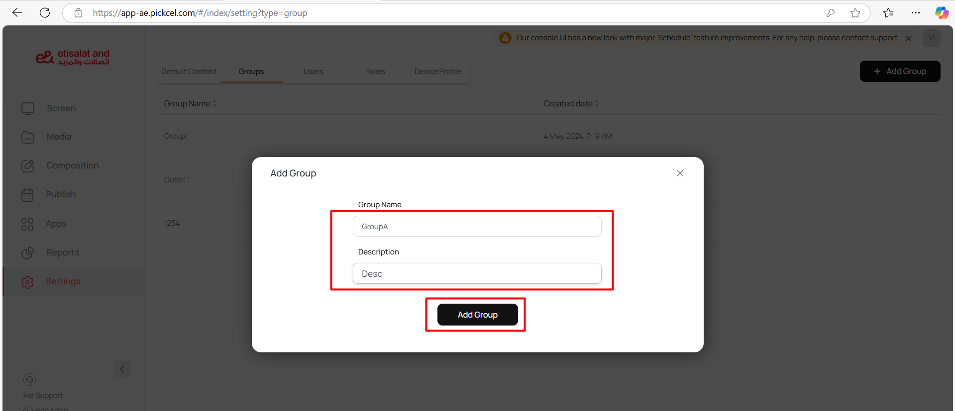 2. Next, assign a group name and description, then click on 'Add Group' to create a Group.