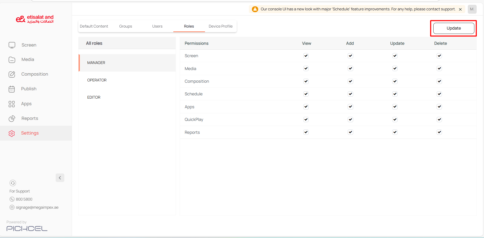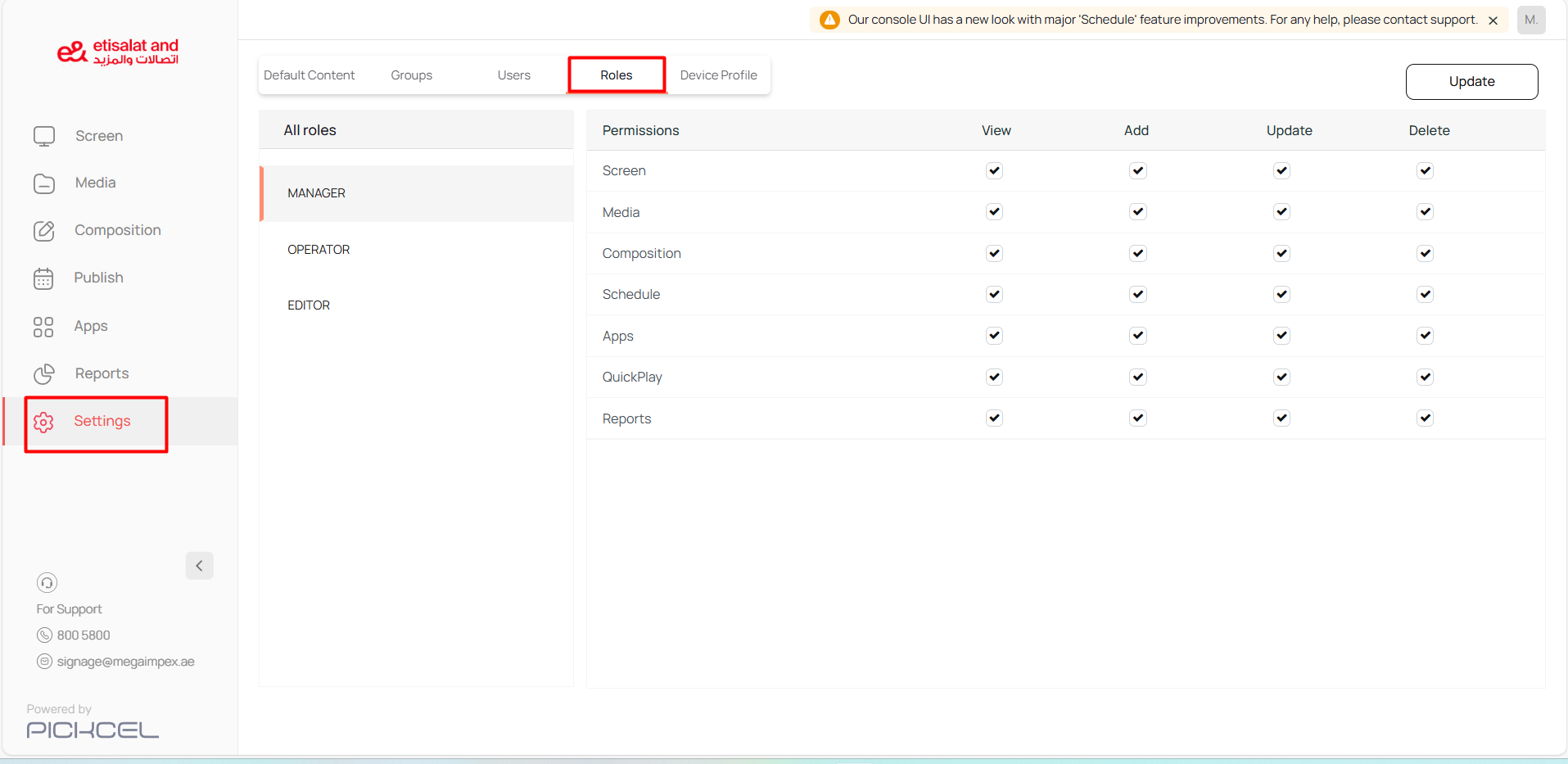 (Manager/Editor/Operator) to access.Then click on ' Update'.