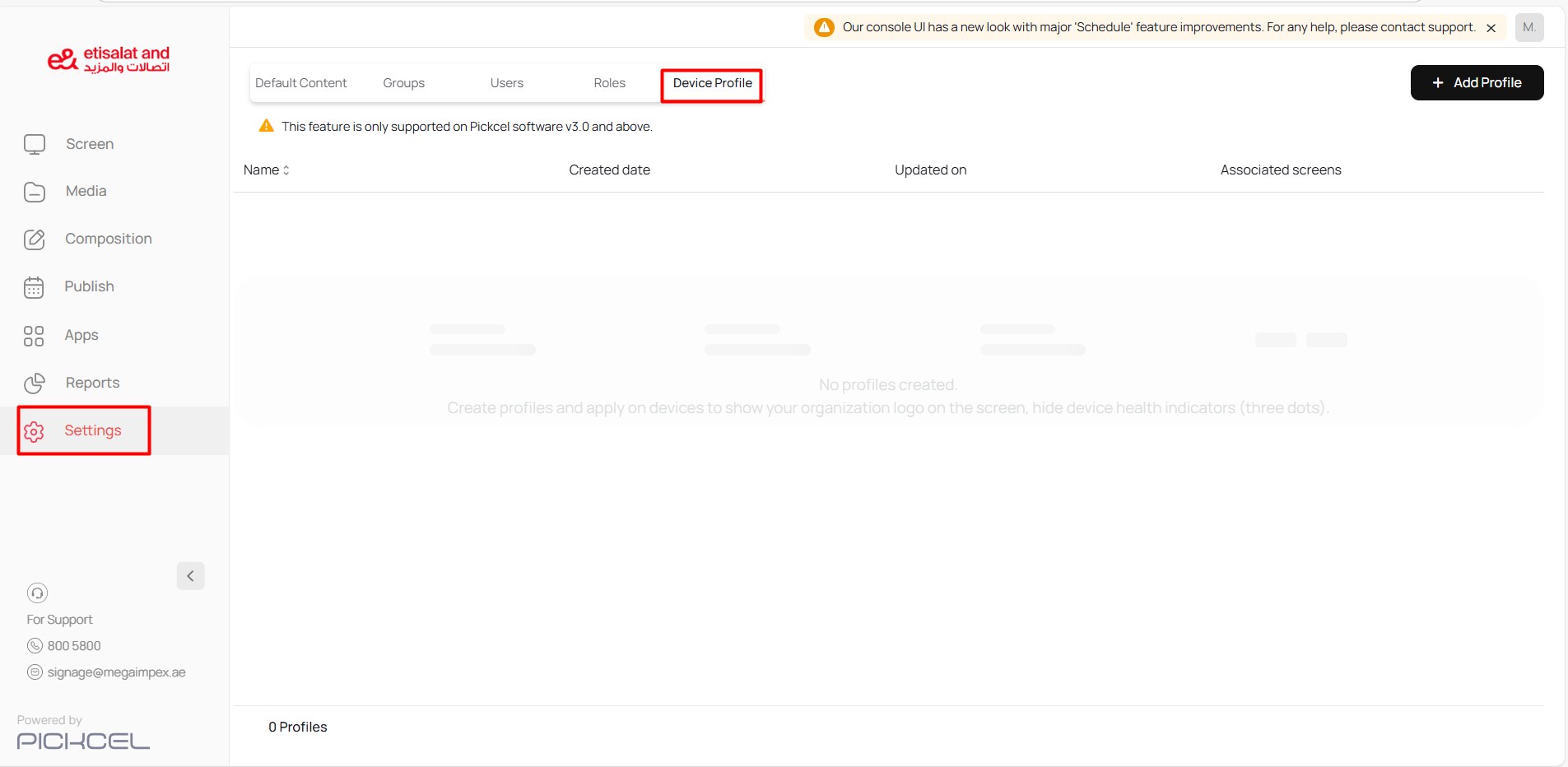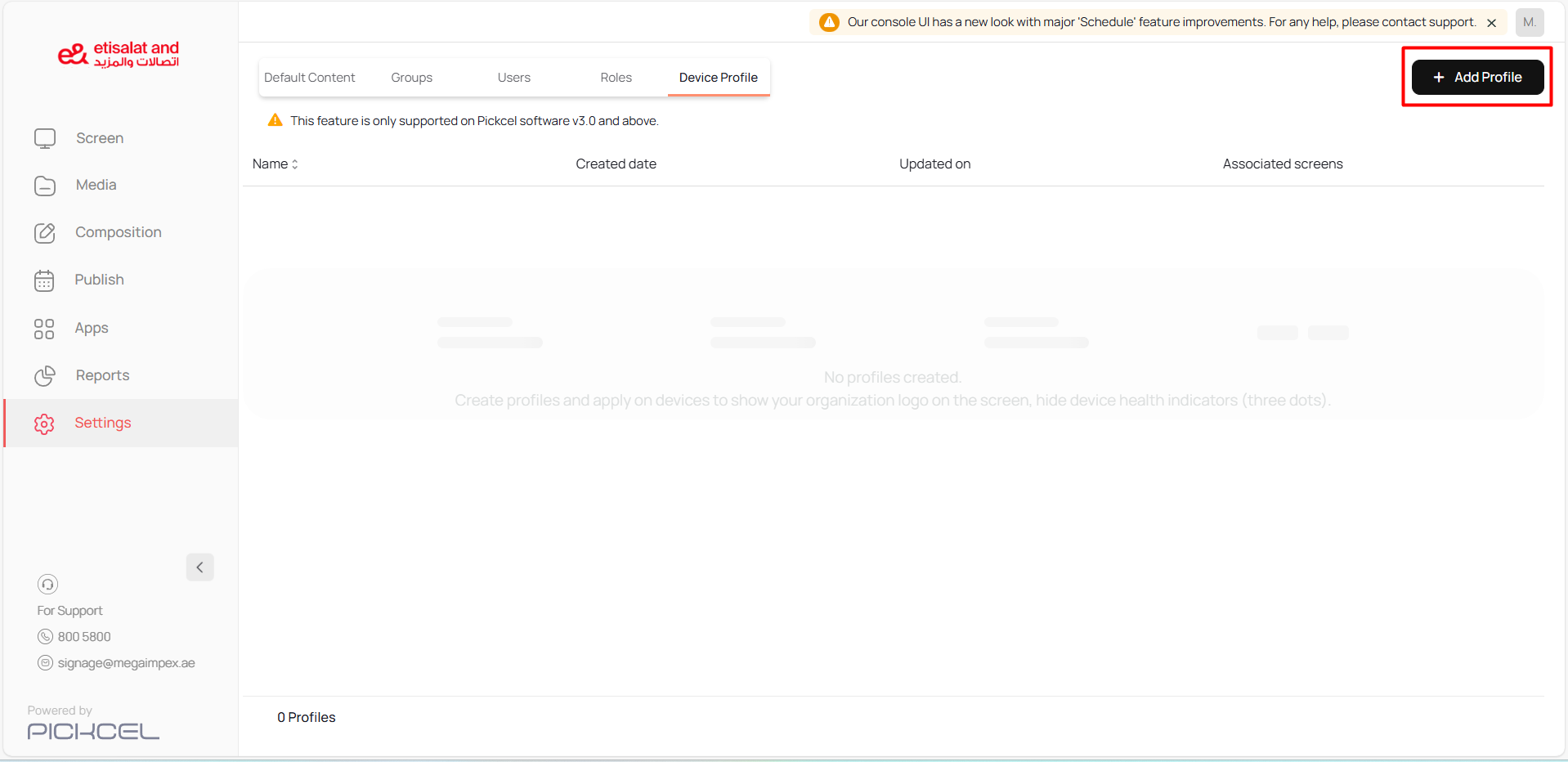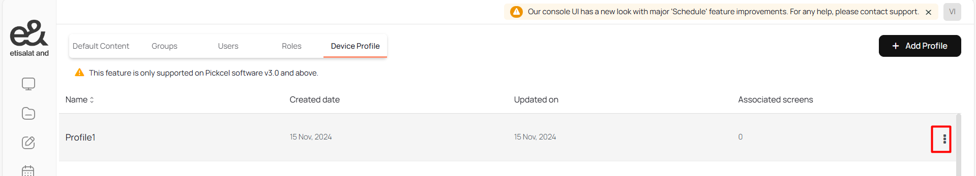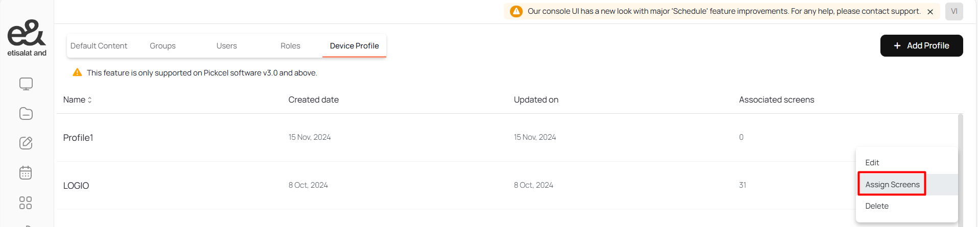 5. To assign a screen to this profile. Select the profile that you want add and click on the