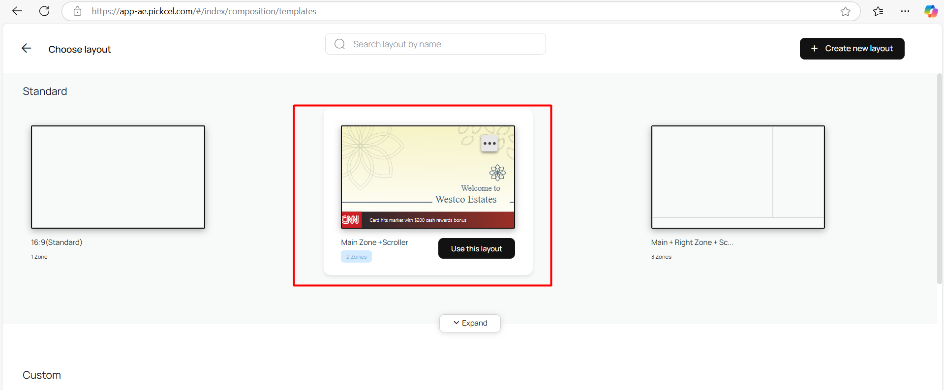 2. Choose a layout for your composition. You can select from the pre-designed Standard