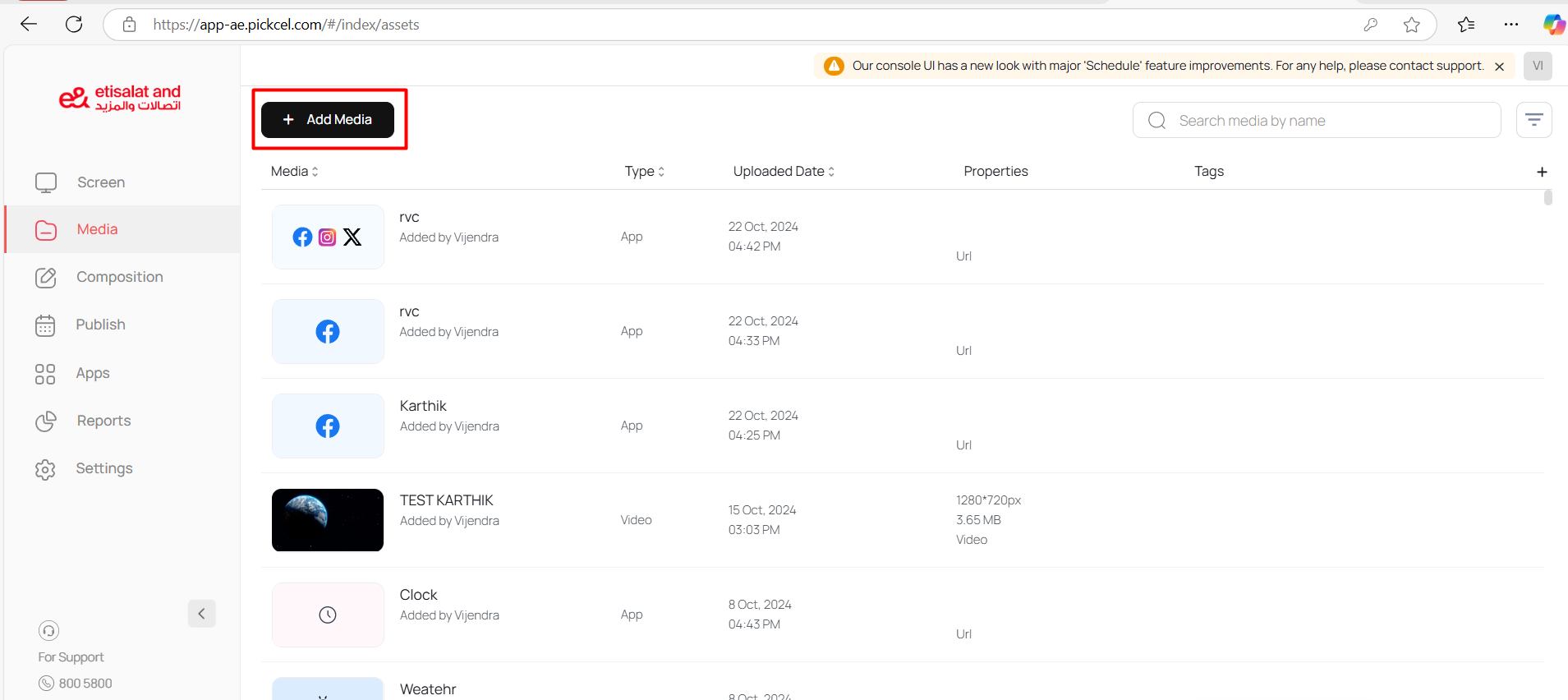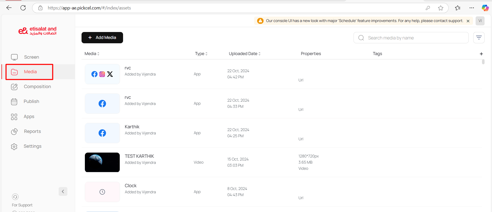 can track the upload status and once it's uploaded it will reflect in the media listing.