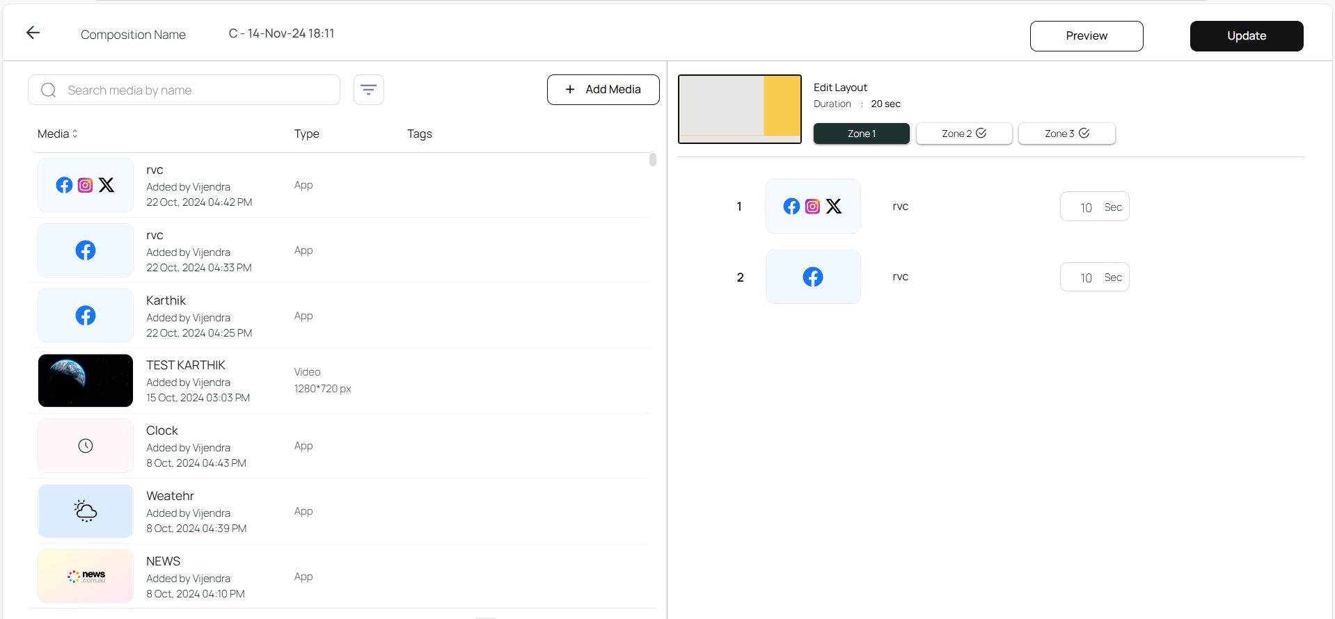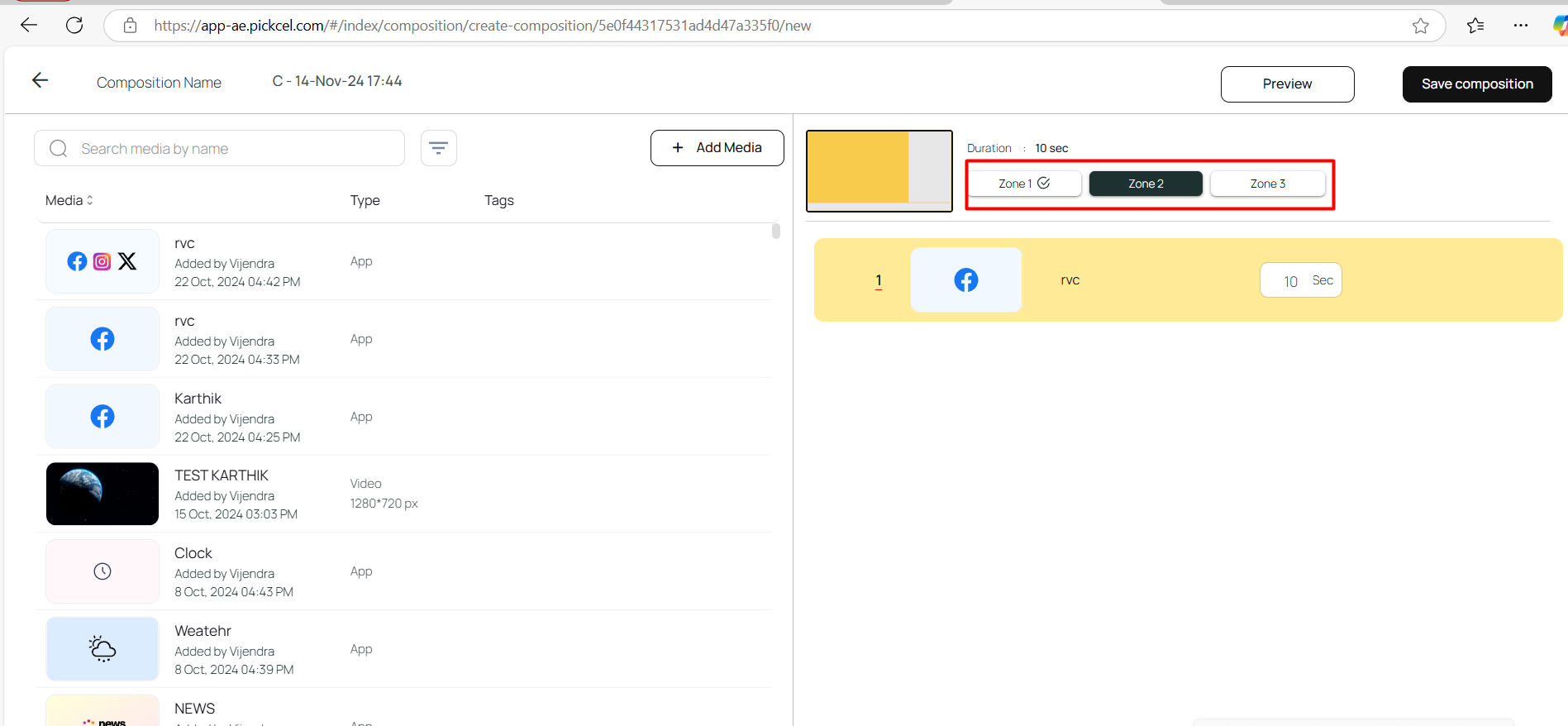 11. Once you are done adding media to one zone, you can click on the next zone and follow