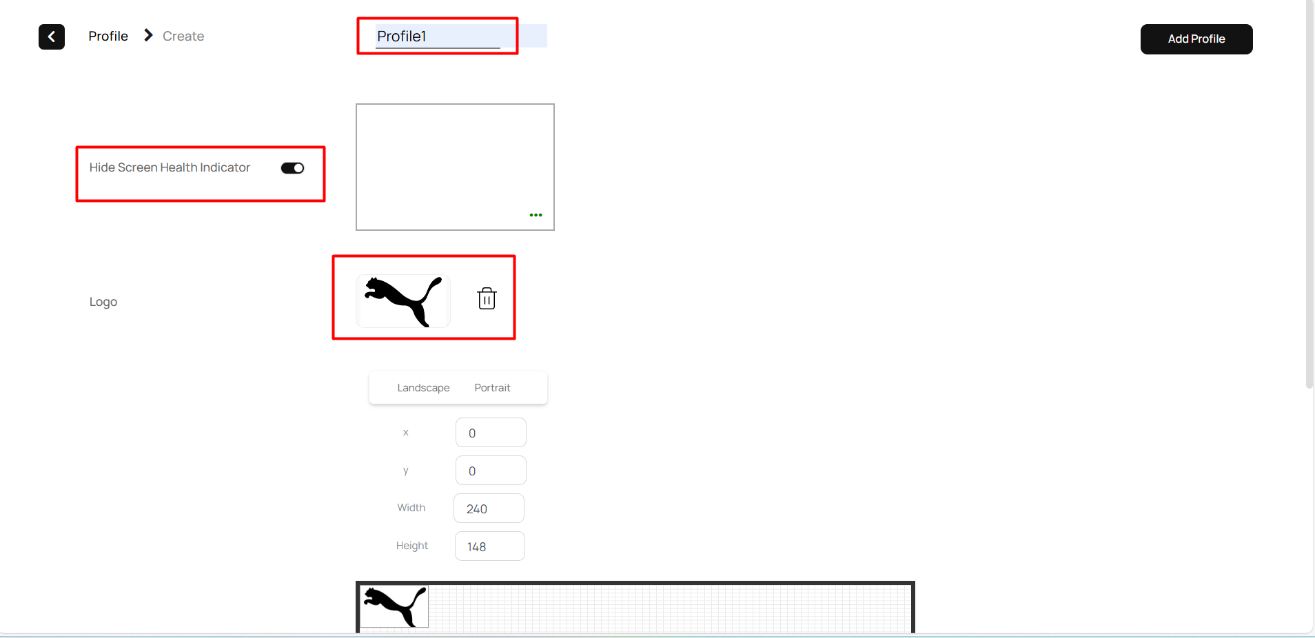 3. Add aprofile name, enable or disable the health indicator, and add a logo.