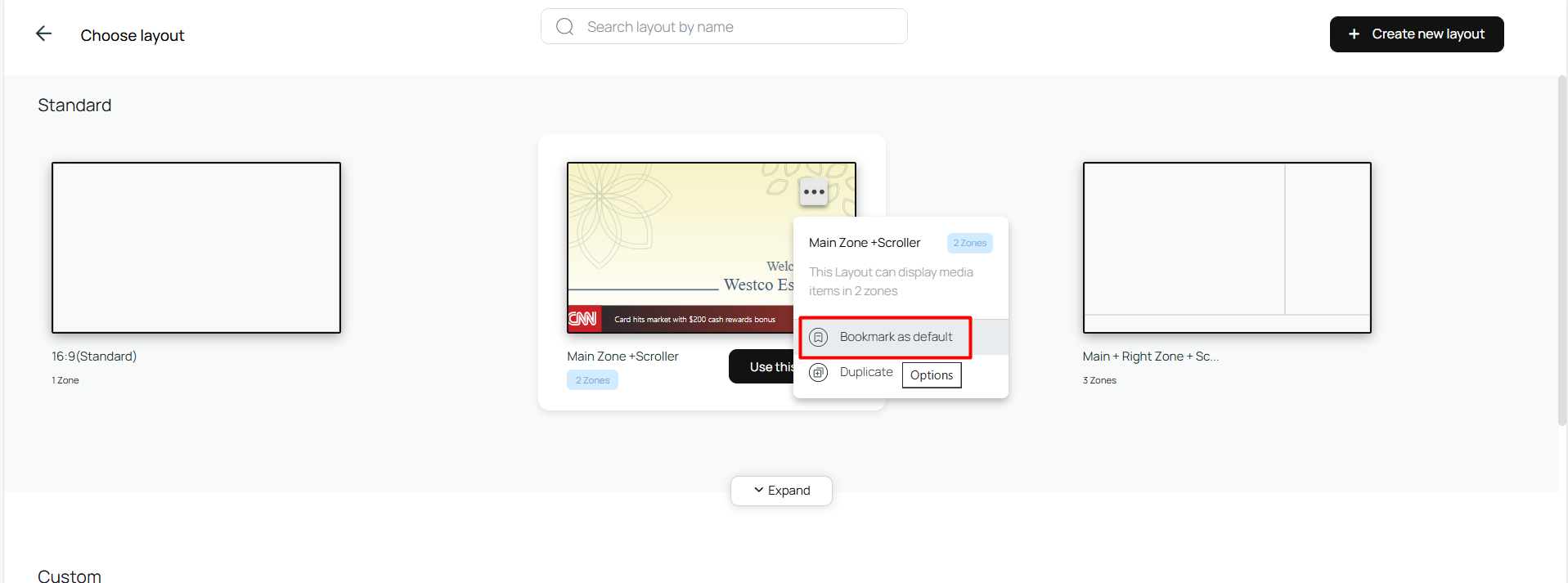 3. You can also bookmark any layout by clicking on the Bookmark as default option that