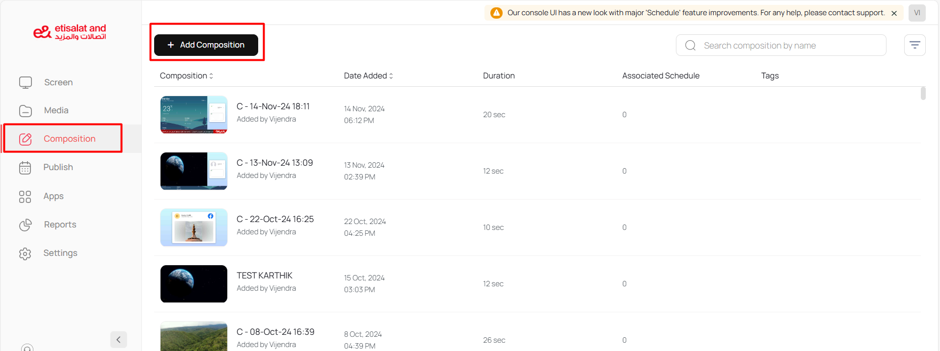 1. Click on the Composition menu from the left hand side and click on the + Add